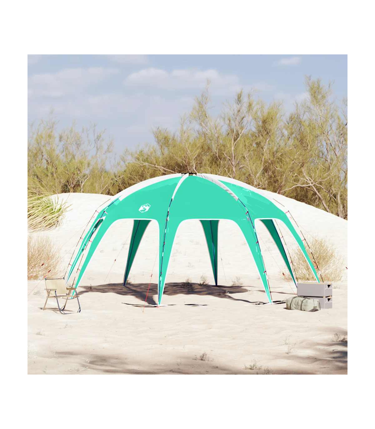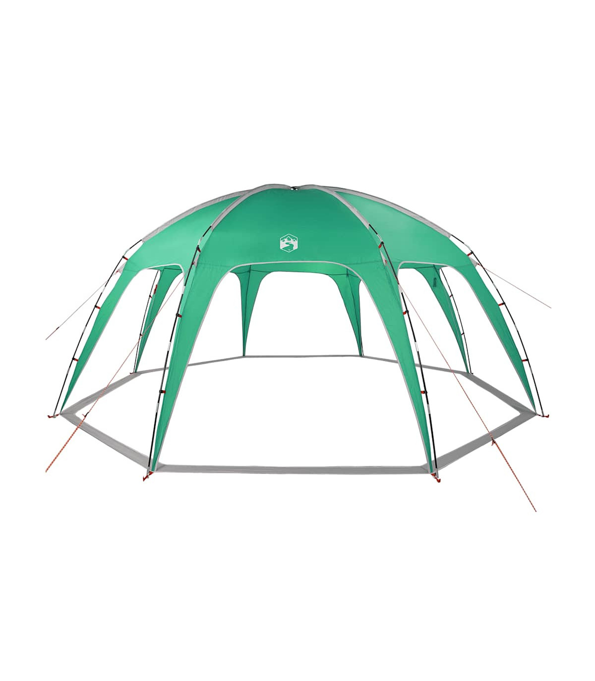 This party tent offers your family and guests safe protection from unpleasant weather, whether you are hosting a celebration or a small, private gathering. All-round waterproof design: This camping tent, made from polyester with a PU coating, is waterproof and wind resistant.Easy setup and takedown: Setting up and taking down the tent is a breeze thanks to the highly flexible and lightweight fibreglass poles and the convenient pin-and-ring connection system. Multifunctional tent: This tent provides shelter for the swimming pool, while also catering to a variety of needs such as family camping, picnics, parties, outdoor dining, and more.Stable and safe: Secure your tent firmly to the ground with the stakes and guy ropes provided to ensure stability and safety.Lightweight and portable: The foldable and lightweight design allows you to easily pack the tent and store it in the included carry bag for easy transport. Warning:Keep all flame and heat sources away from this product fabric.