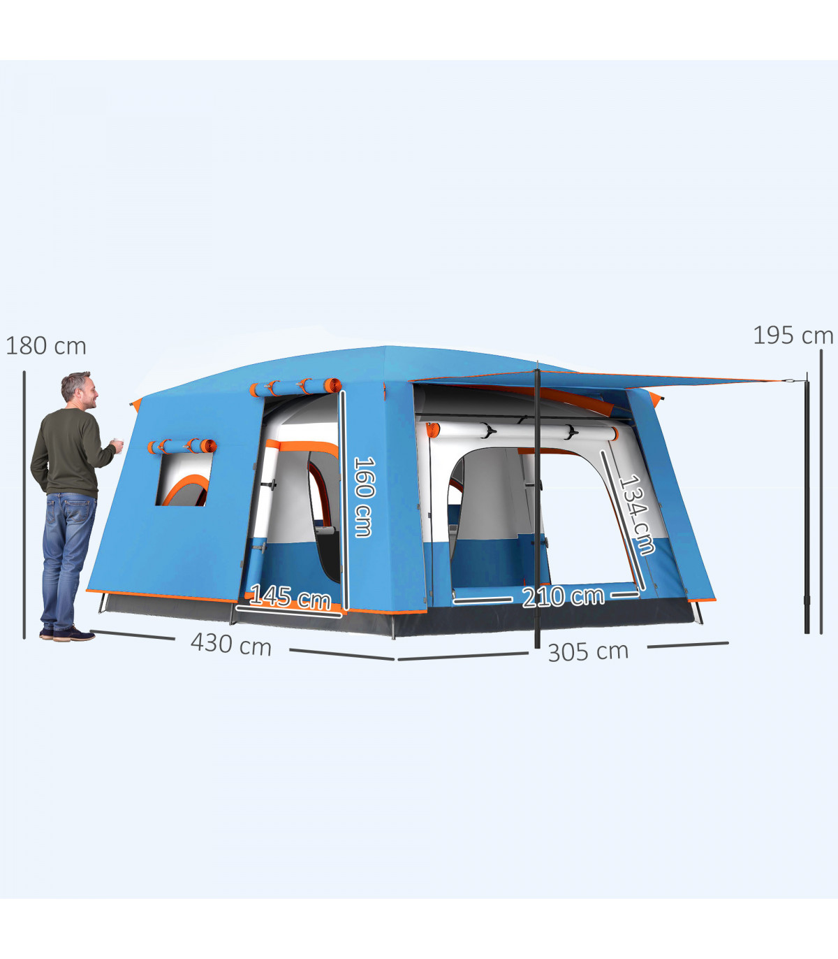 ● Overall Dimensions: 430L x 305W x 195H cm