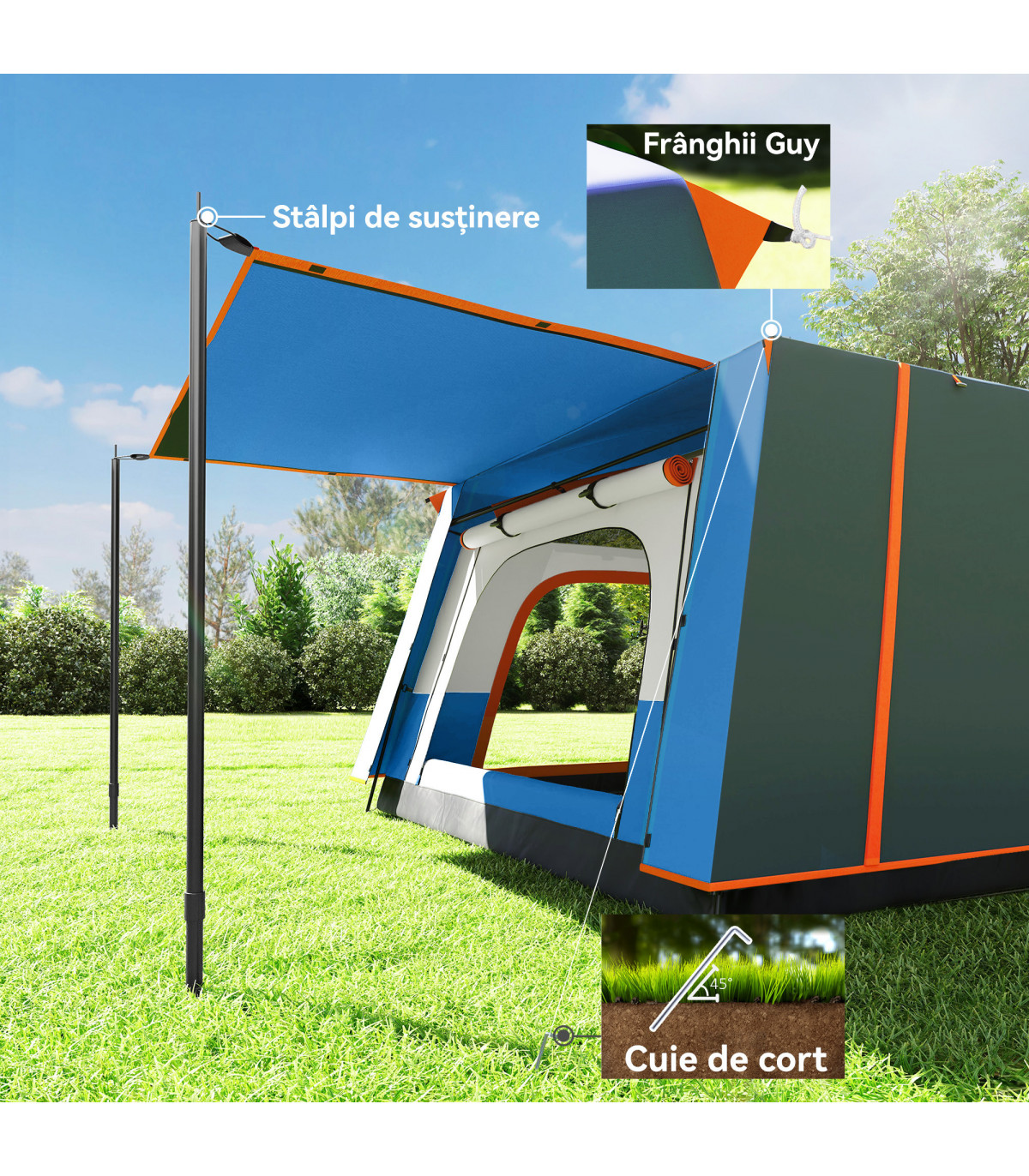 ● Includes 20 tent pegs, 8 guy ropes and a carry bag