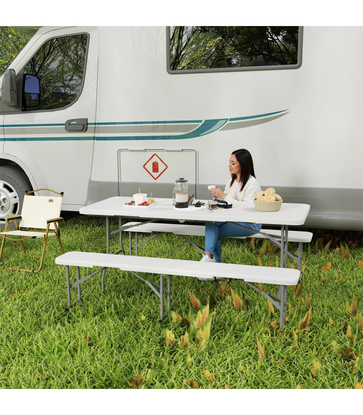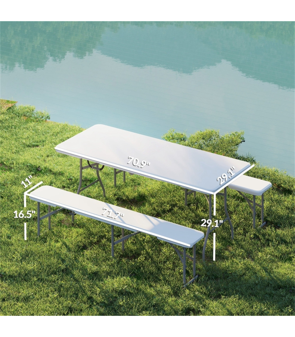 - - Folding Dimensions: 36.2" L x 29.1" W x 2.8" H (table), 36.2" L x 11" W x 3" H (chair)