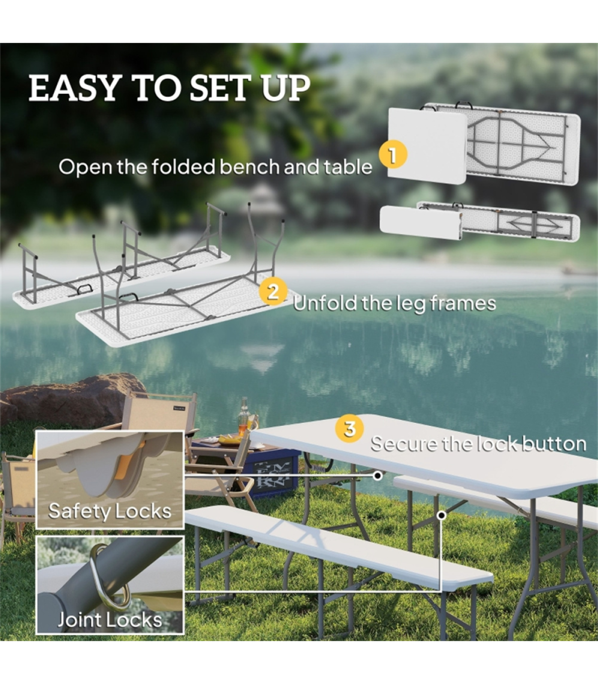 - - Safety locks prevent accidental folding and increase stability