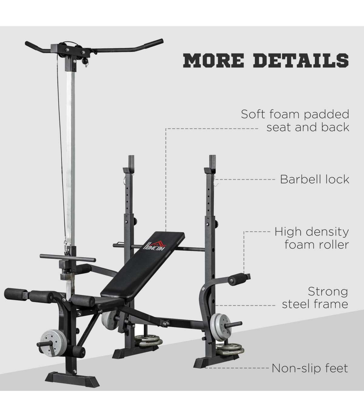 ● Assembly required. Weights and barbells are not included.