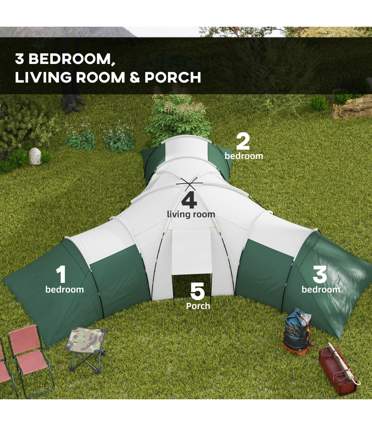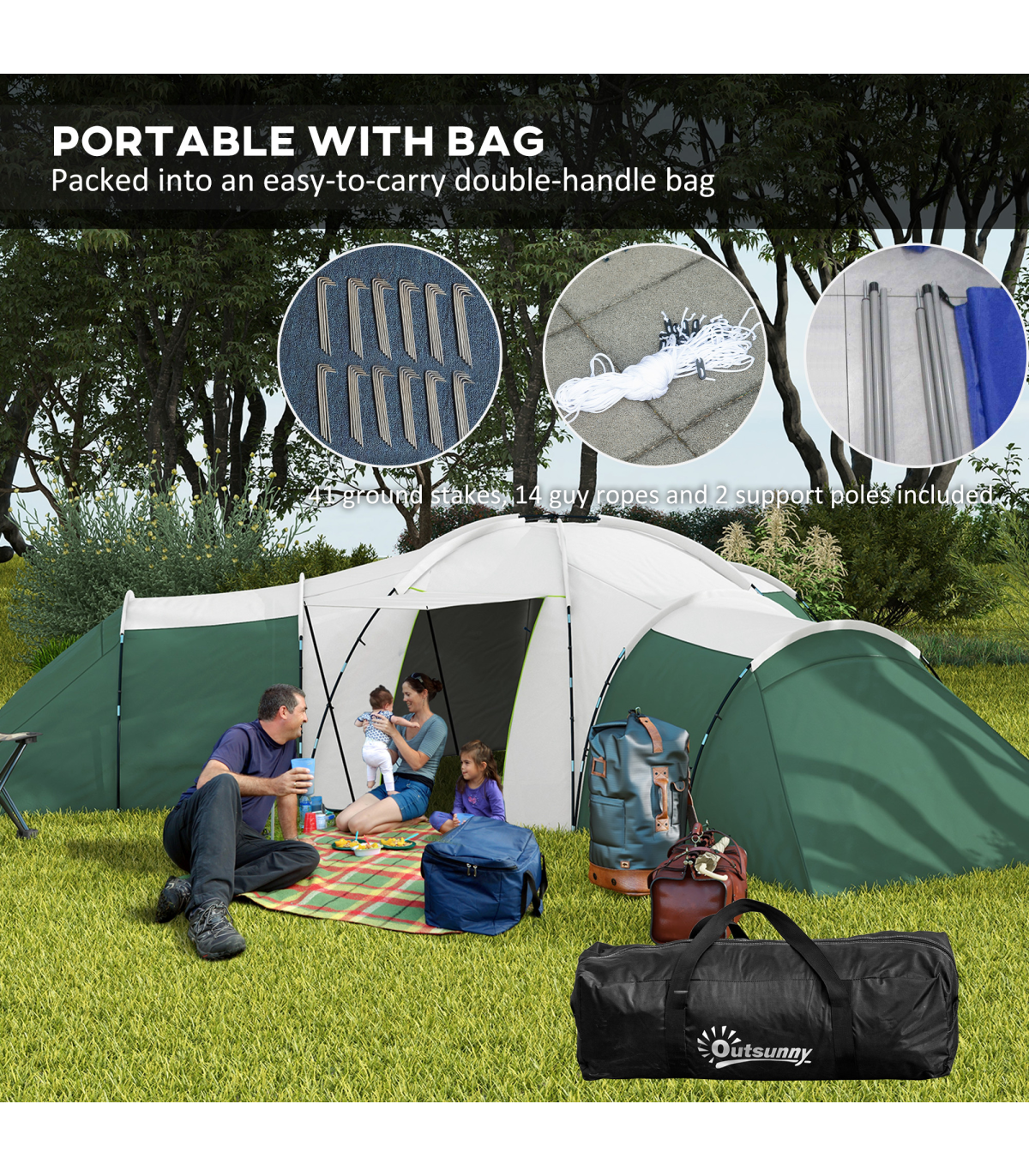 ? 41x ground stakes, 14x guy ropes 2x support poles and carry bag included