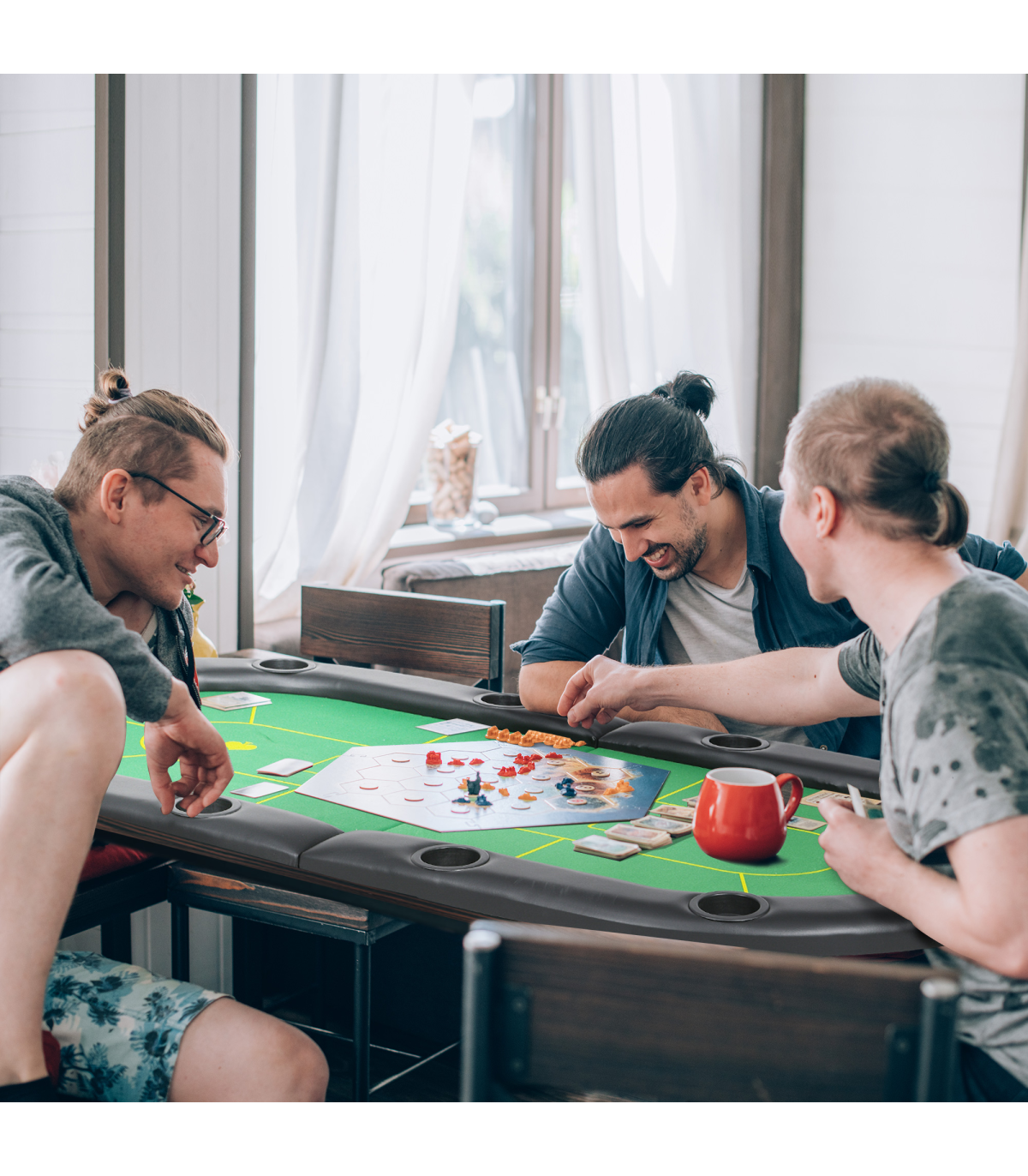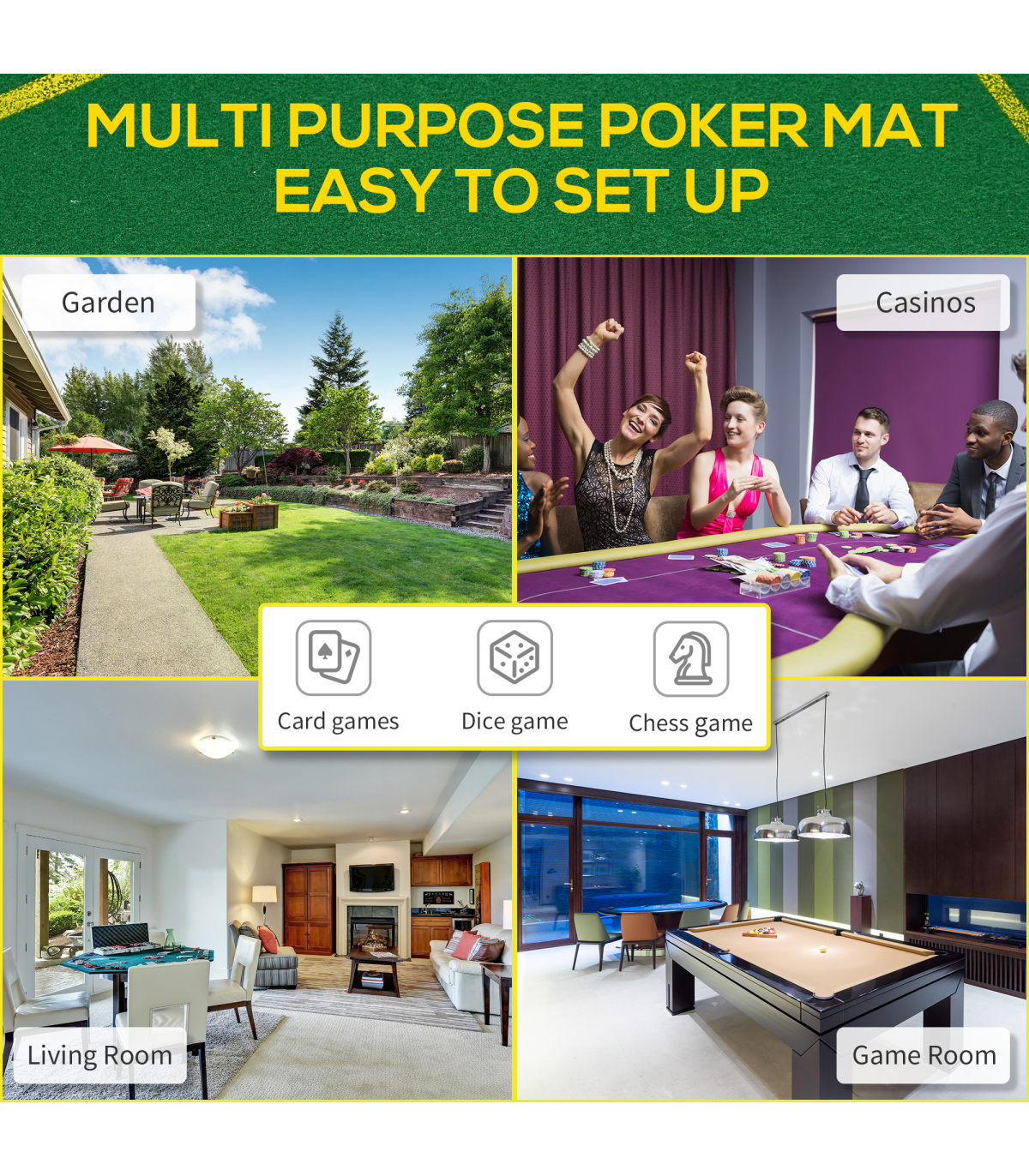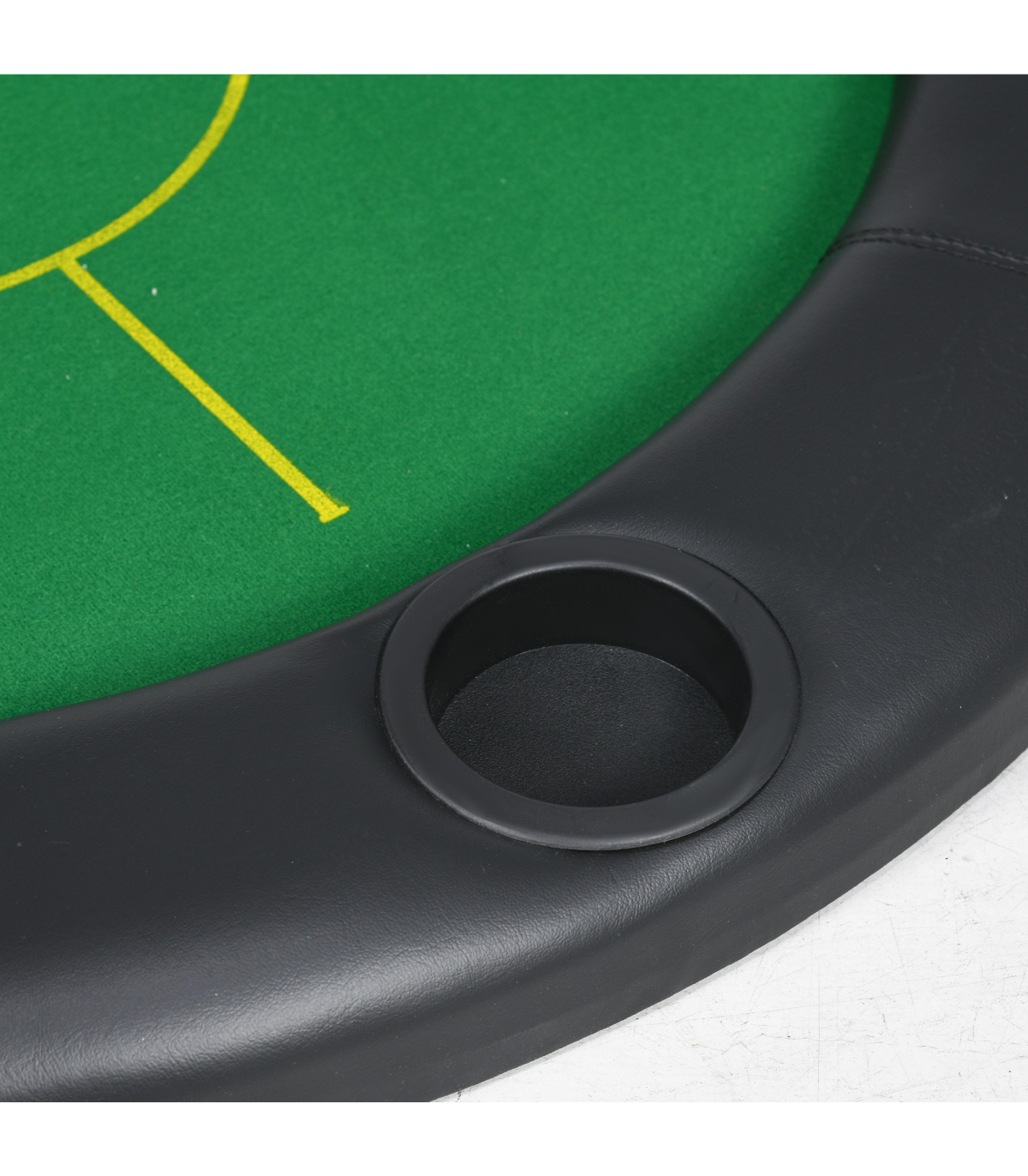 Experience the thrill of poker anywhere, anytime with the foldable SPORTNOW poker mat. It's foldable, comes with a bag and is great for gatherings. Made of solid MDF and green felt, it has a professional feel. With 10 cup holders, it's suitable for up to 10 players. Take your poker nights to the next level, making gatherings and parties extra exciting!