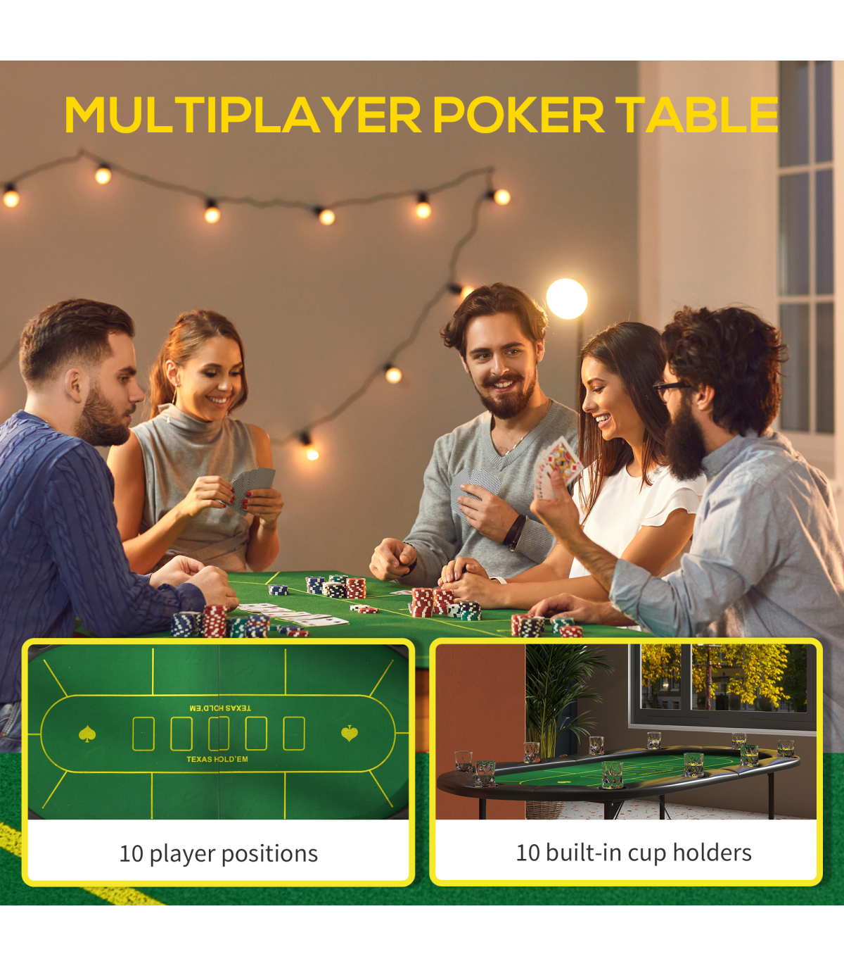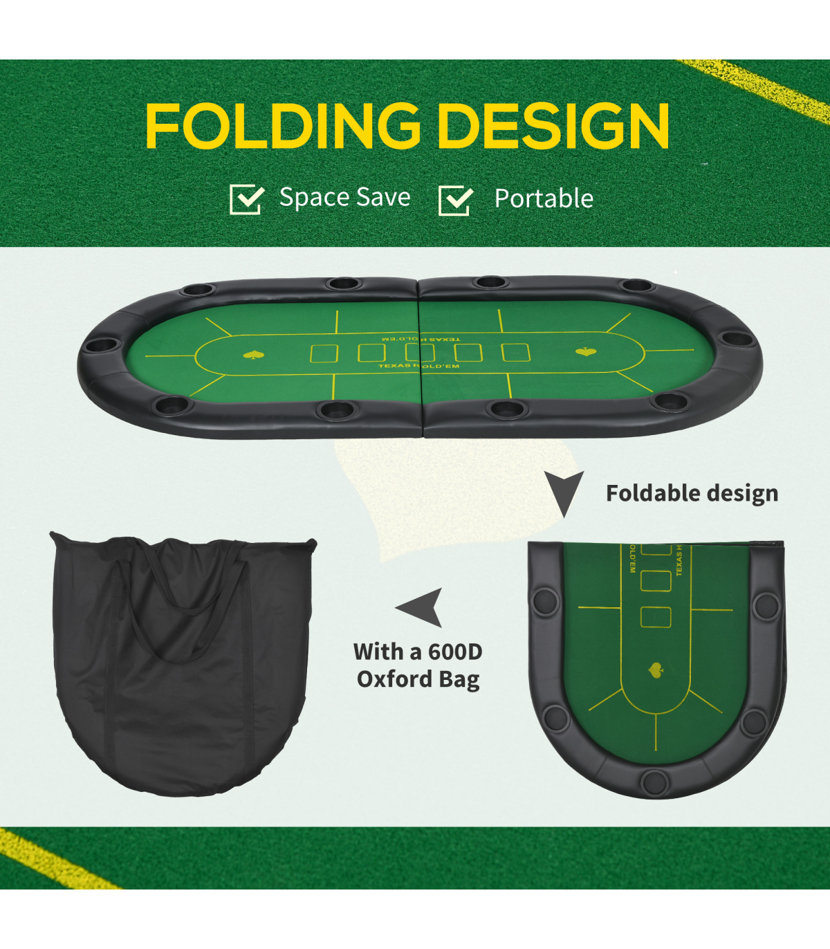 SPORTNOW Foldable Poker Mat, 10-Player Table Top with Cup Holders, Carry Bag