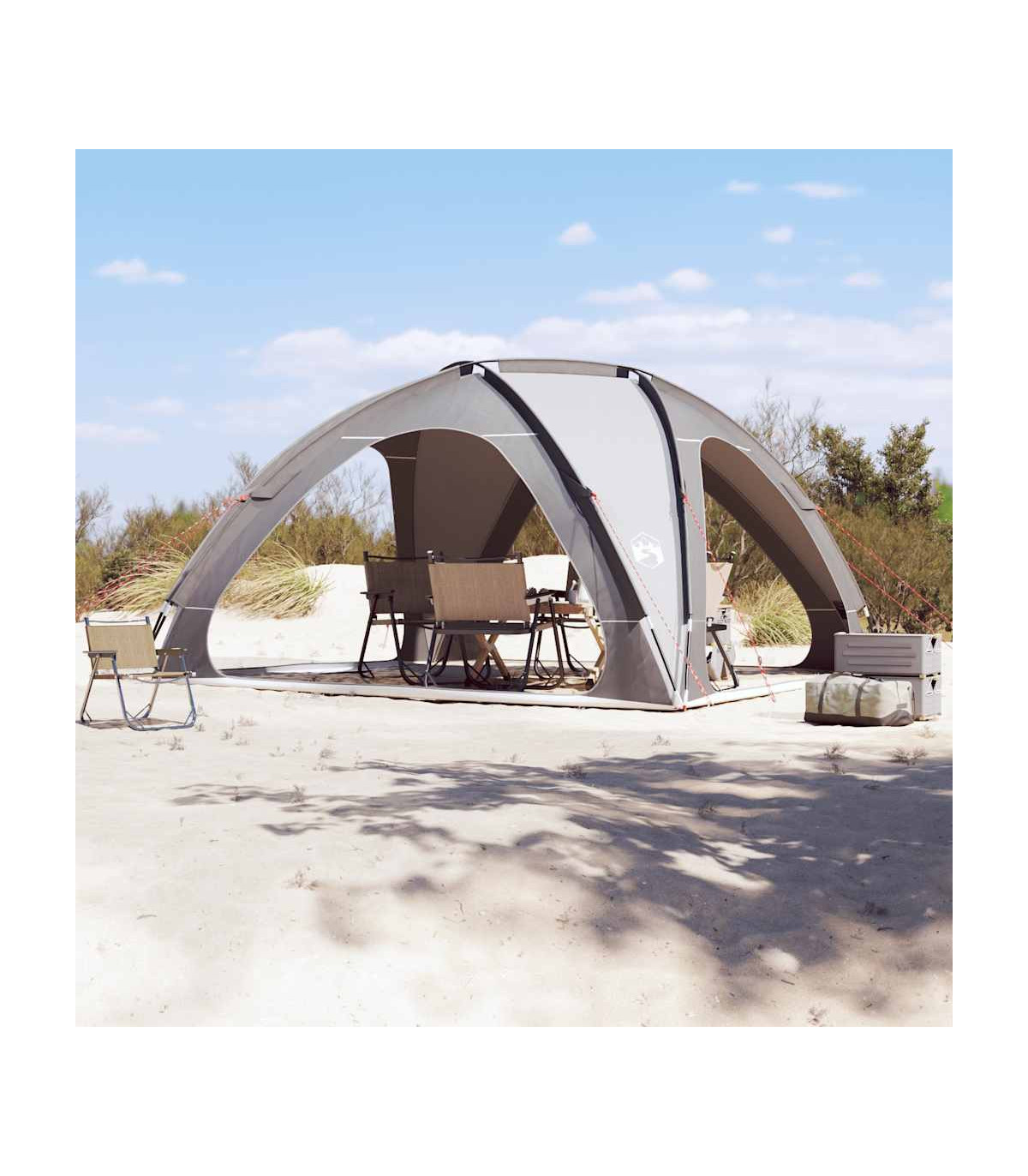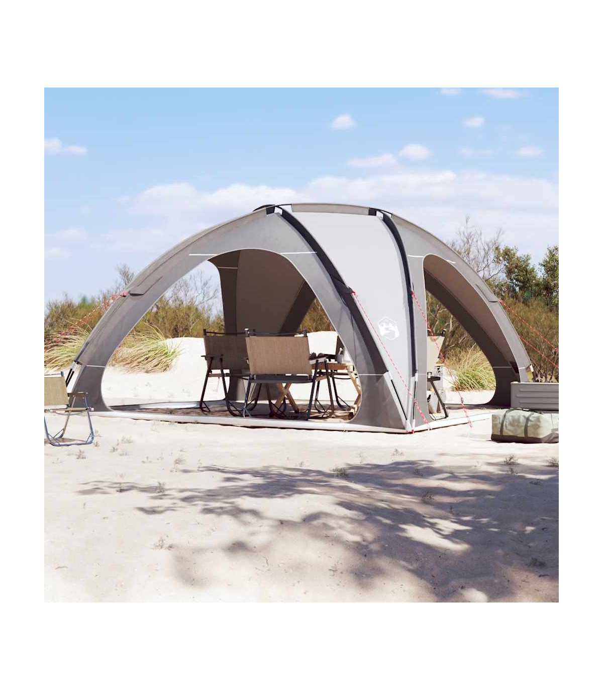 This party tent offers your family and guests safe protection from unpleasant weather, whether you are hosting a celebration or a small, private gathering. All-round waterproof design: This camping tent, made from polyester with a PU coating, is waterproof and wind resistant.Easy setup and takedown: Setting up and taking down the tent is a breeze thanks to the highly flexible and lightweight fibreglass poles and the convenient pin-and-ring connection system.Stable and safe: Secure your tent firmly to the ground with the stakes and guy ropes provided to ensure stability and safety.Lightweight and portable: The foldable and lightweight design allows you to easily pack the tent and store it in the included carry bag for easy transport. Warning:Keep all flame and heat sources away from this product fabric.