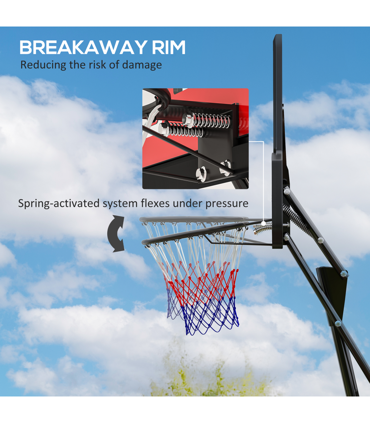 ● Shatterproof backboard enhance game safety
