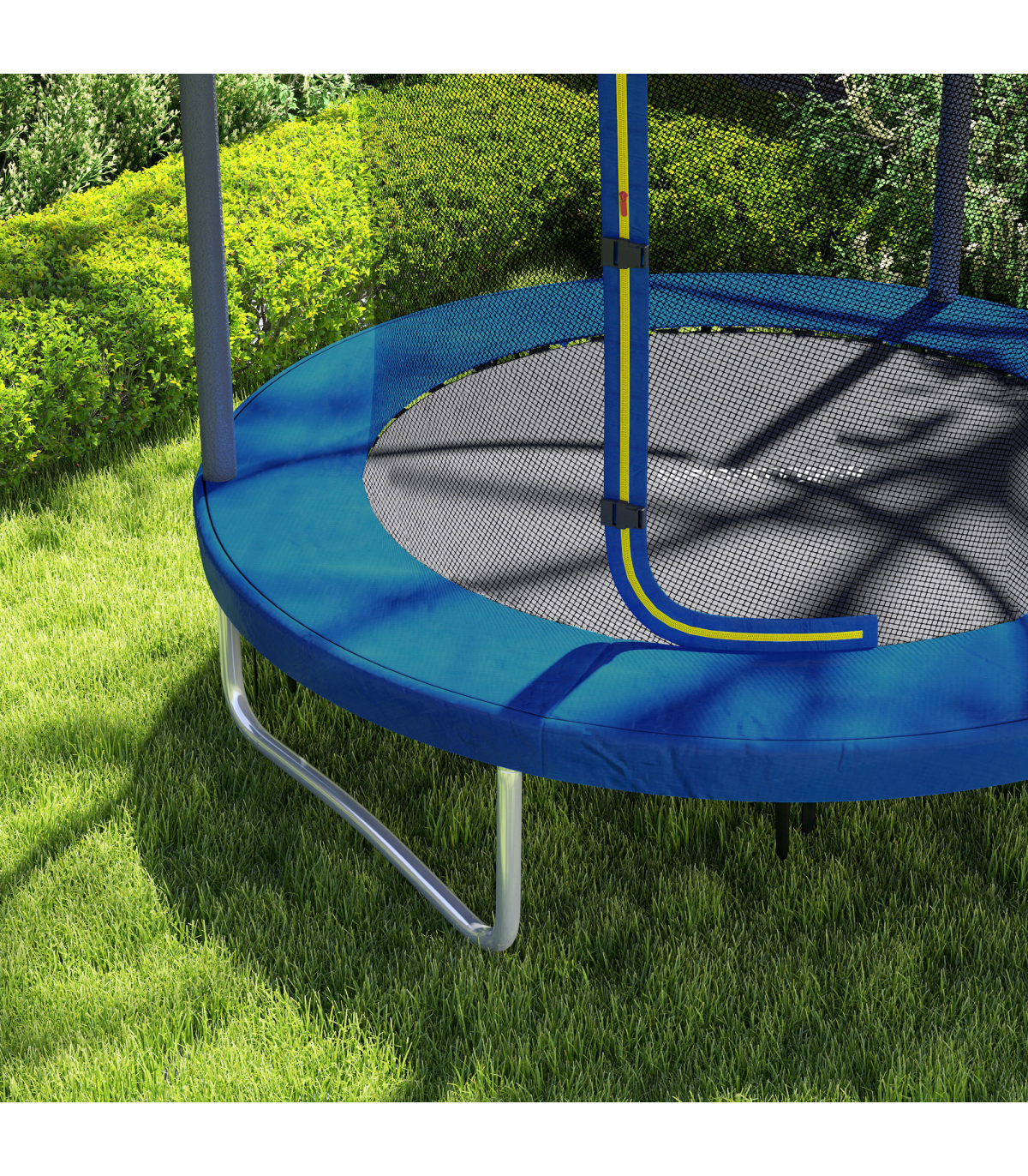 Leap into fun with the SPORTNOW outdoor trampoline! Featuring a PE net enclosure and curved poles covered with protective safety pads, it enhances safe bouncing. Three robust steel U-shaped legs and 36 springs provide lively and enjoyable play. Plus, the tight weave PP mat with an external safety pad offers extra protection. A convenient zipper entry adds ease to your trampoline adventures, making it the go-to for exhilarating outdoor fun!