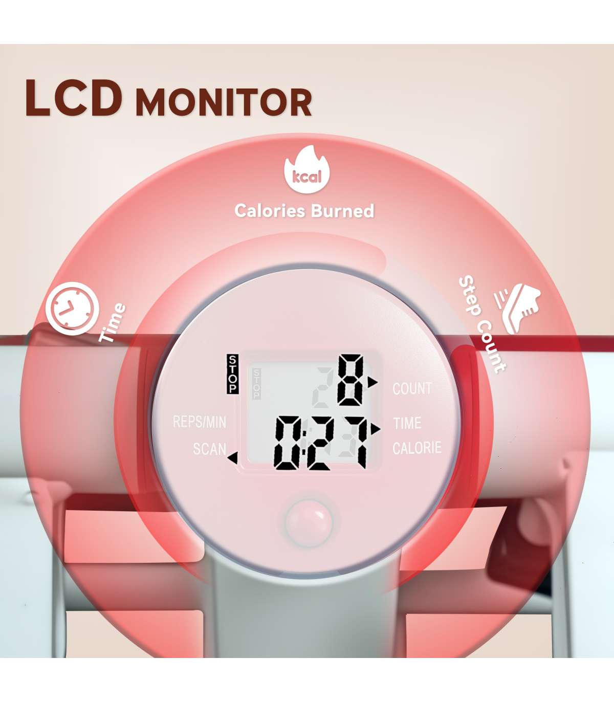 ● LCD monitor shows calories, steps and time