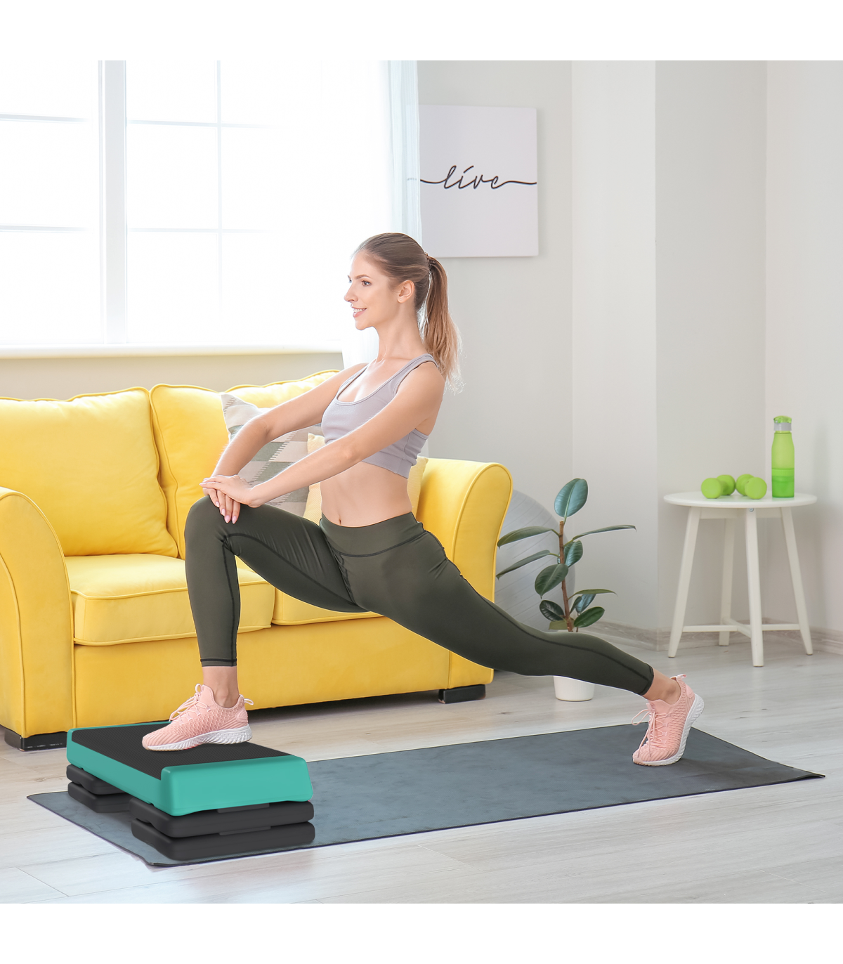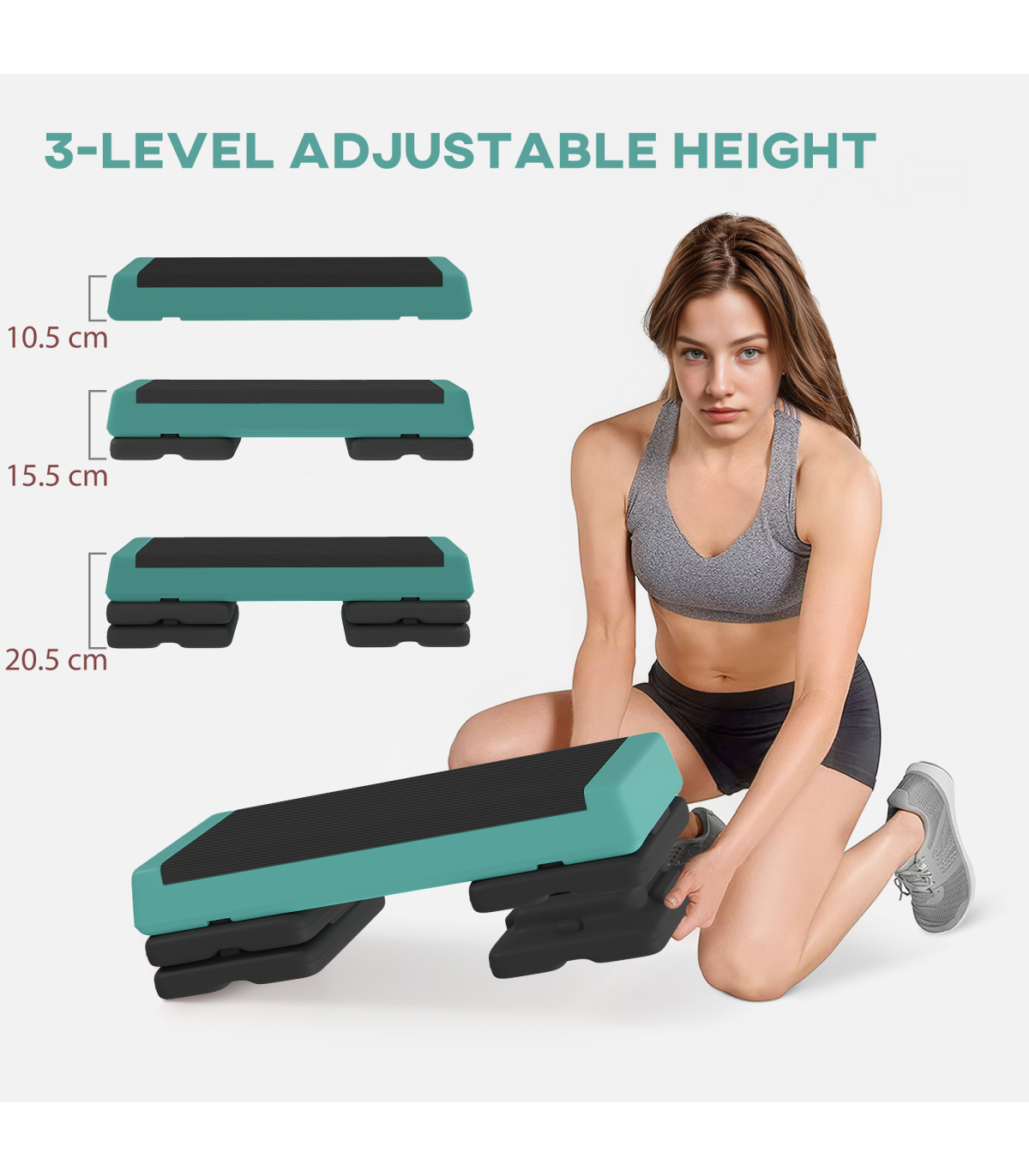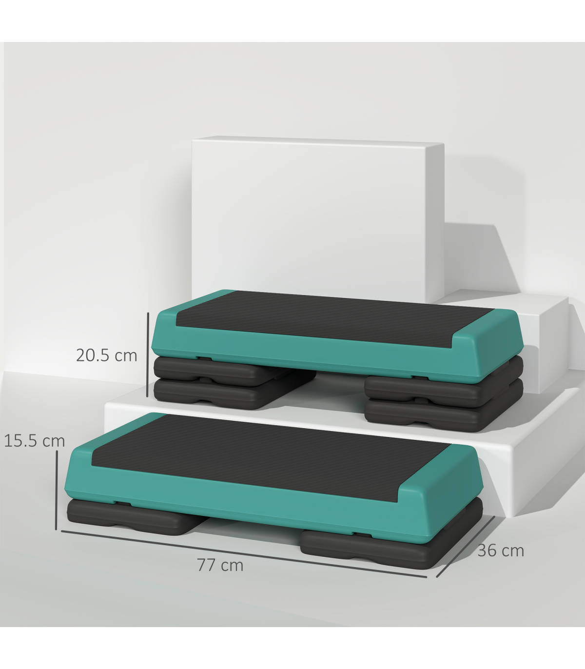 SPORTNOW Aerobic Step, 10.5/15.5/20.5cm Exercise Stepper for Home, Green