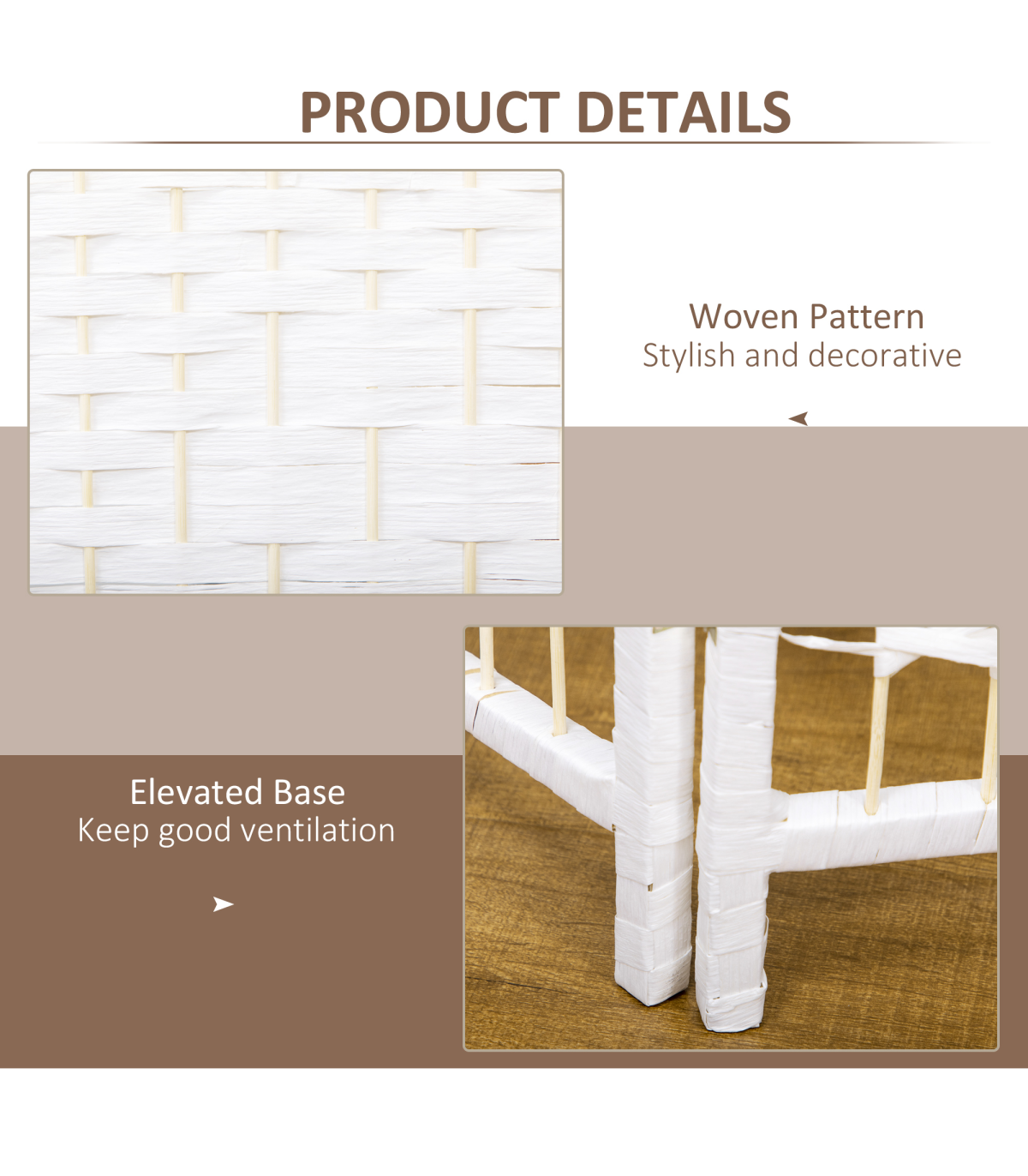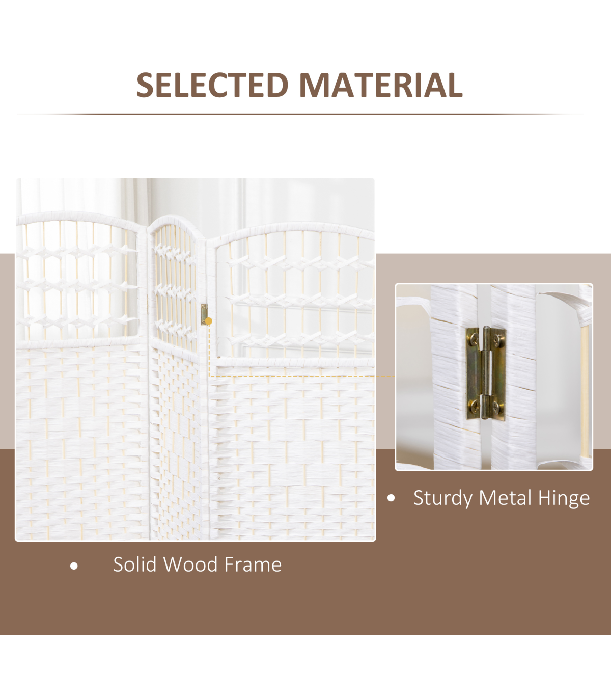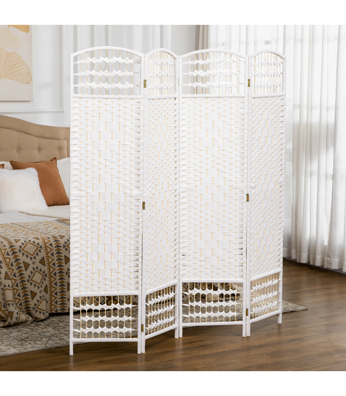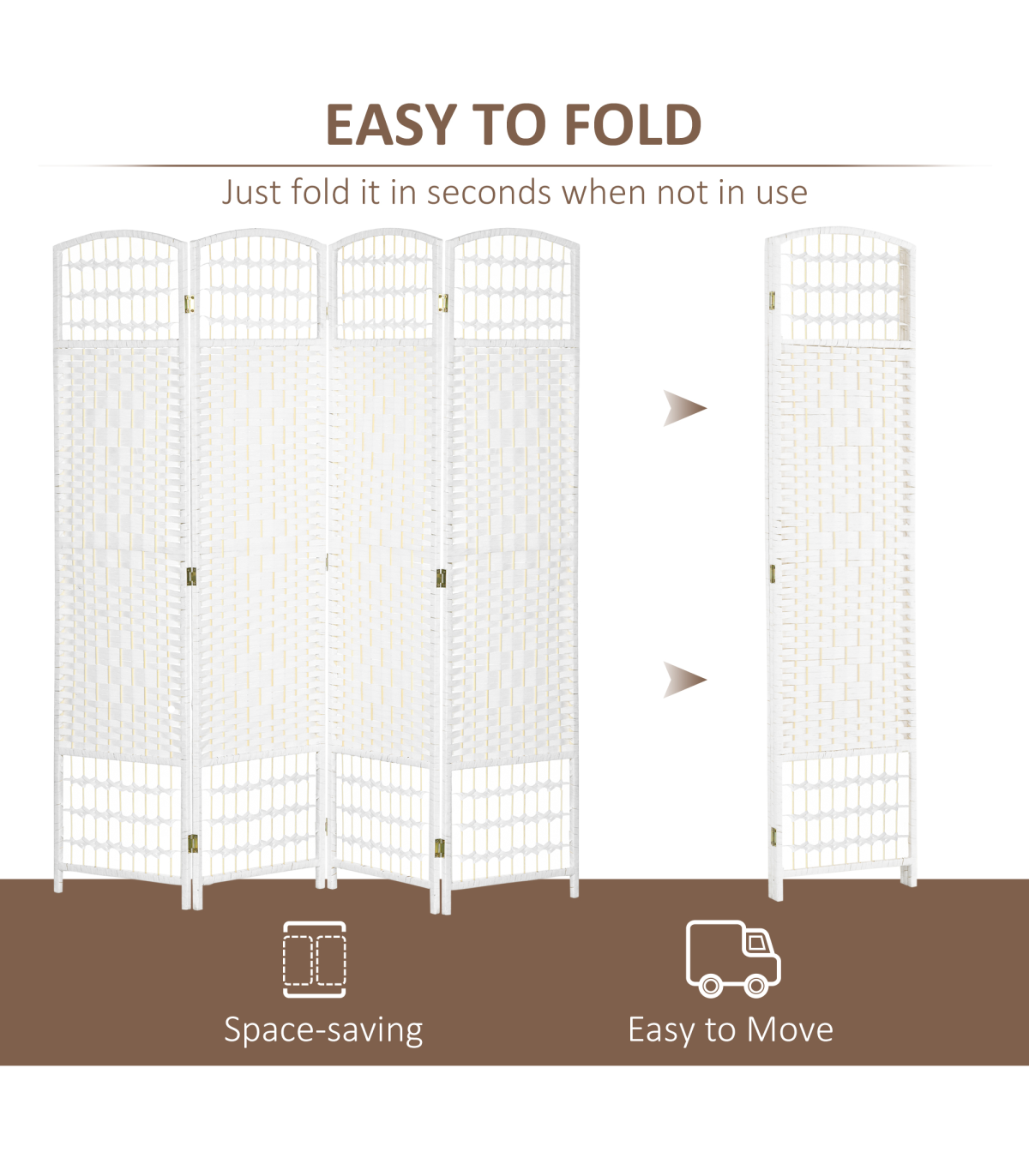 - - Folding design with four panels and nine metal hinges that make it easy to create a new look and ensure space-saving storage