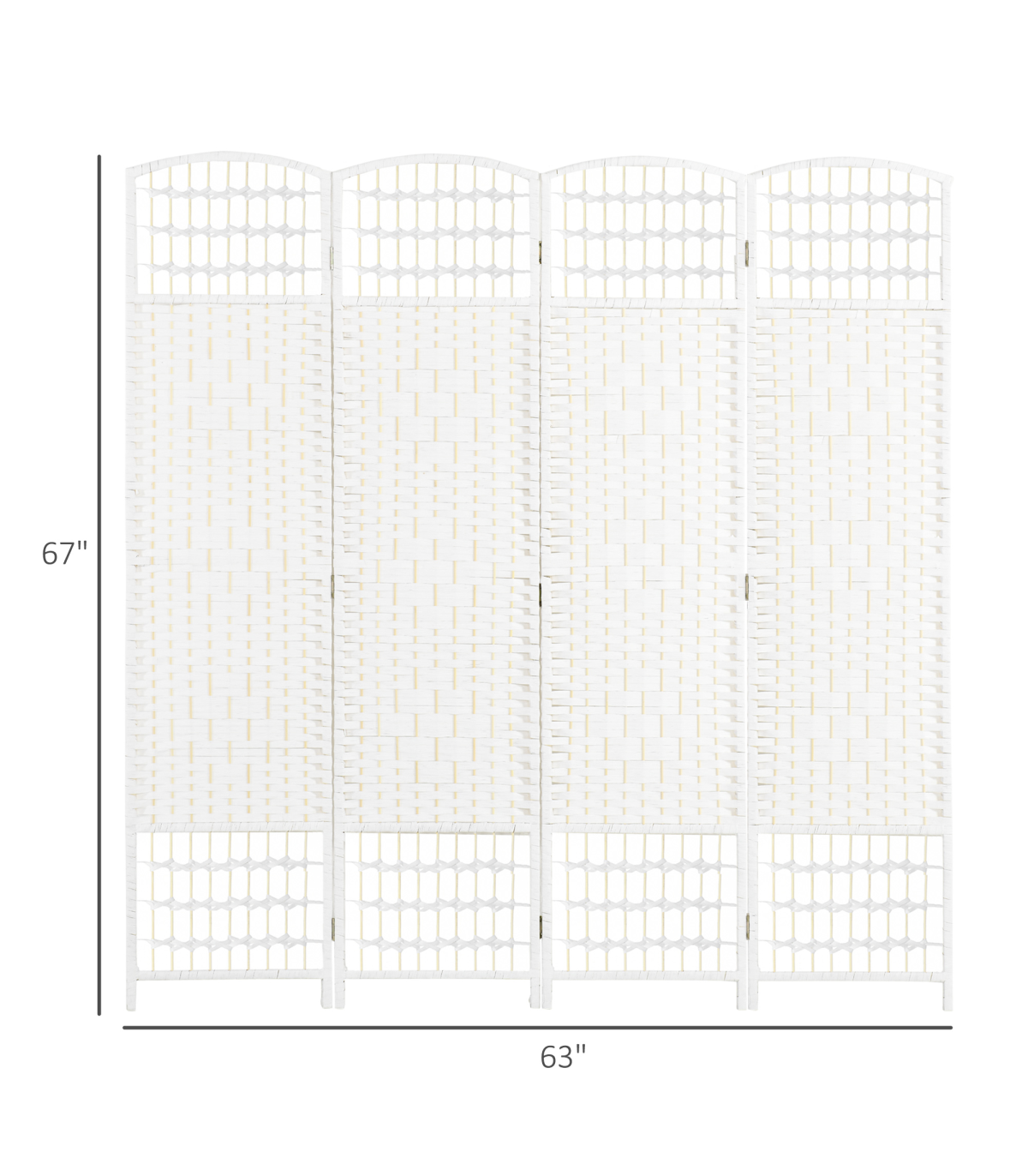 - - Overall Dimensions: (Expanded) 63" L x 0.5" D x 67" H