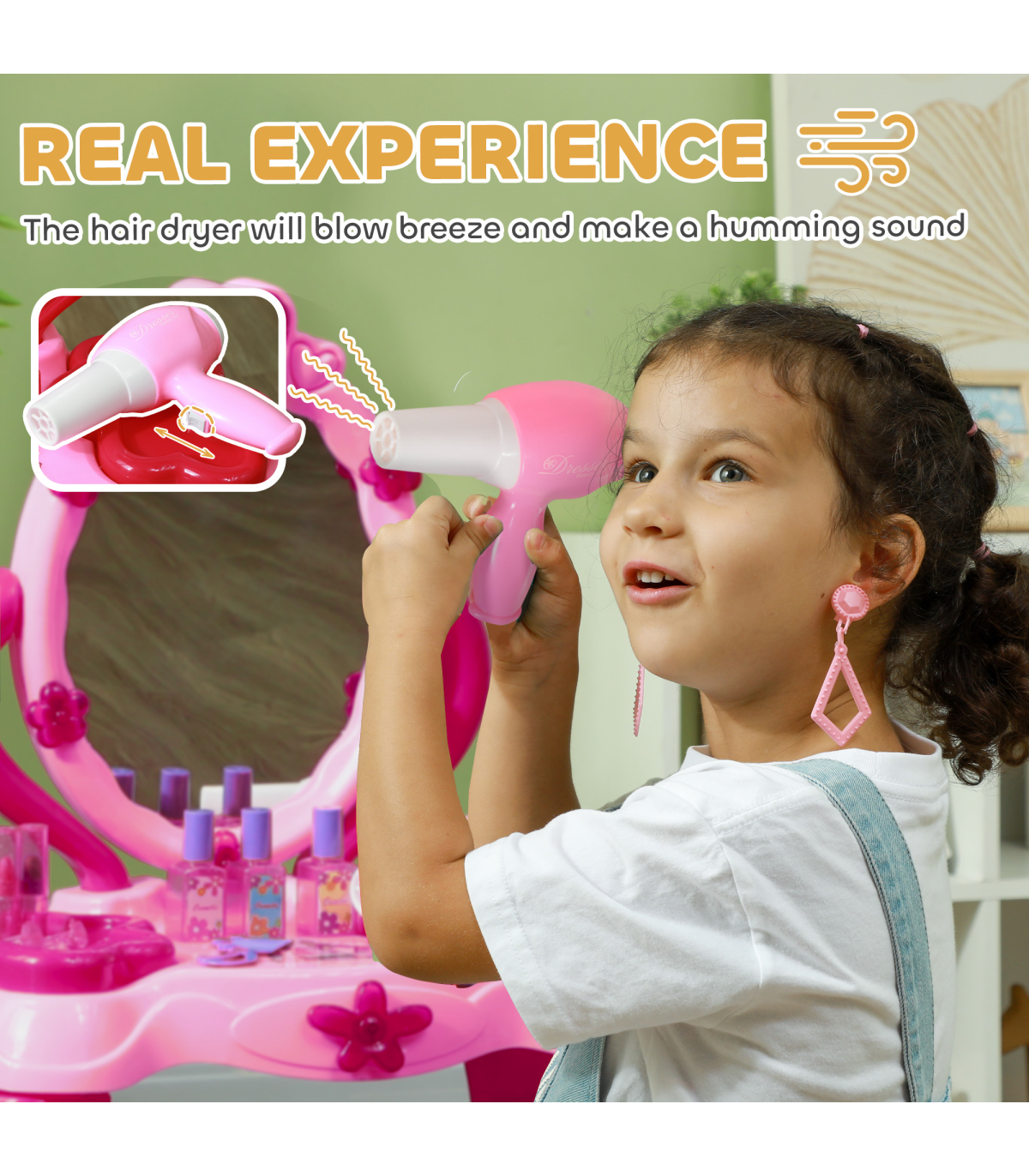 - - Hair dryer makes sounds and emits breeze, mimicking real use