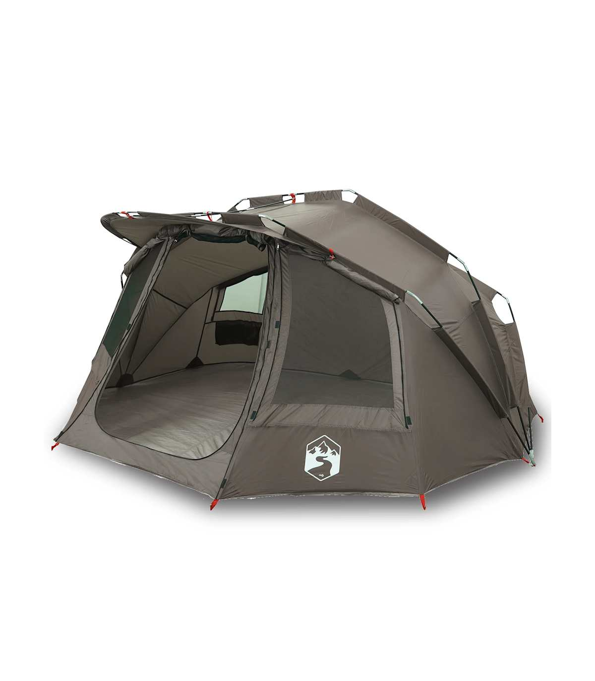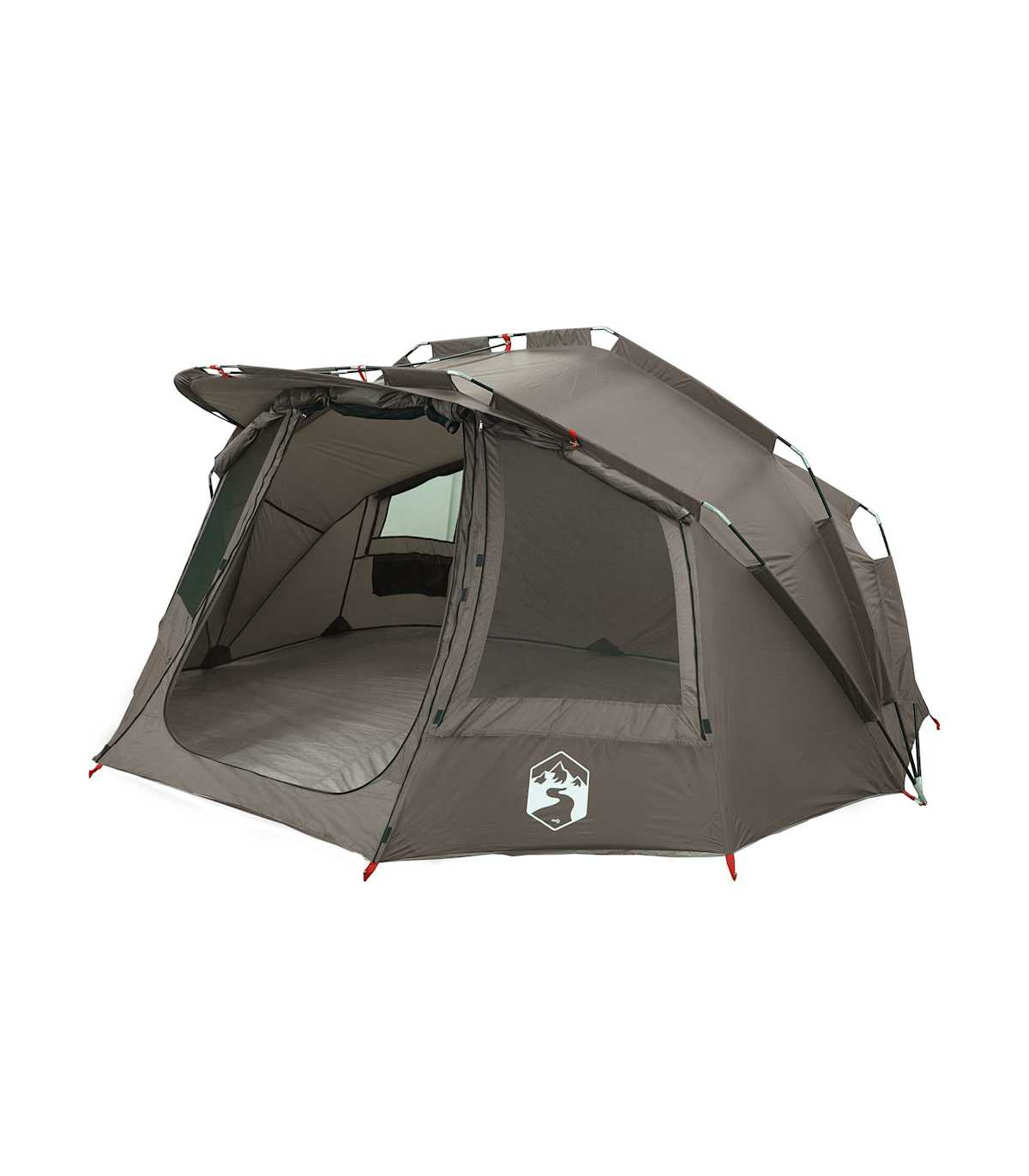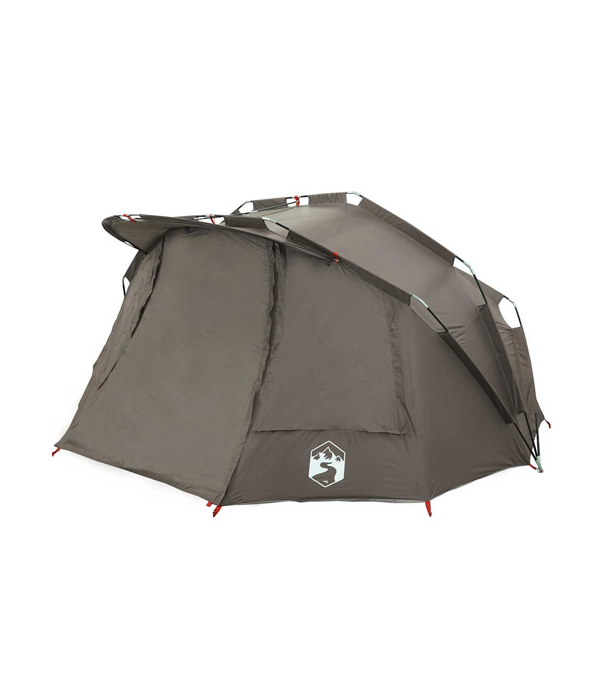 This fishing tent is perfect for creating some shade and protection from the sun's harmful UV rays when fishing. All-round waterproof design: This camping tent, made from polyester with a PU coating, is waterproof and wind resistant. The taped seams effectively prevent rainwater infiltration, while the heavy-duty ground sheet helps maintain a dry and comfortable interior. Easy access: The zippered door allows for easy access. You can roll it up and secure it with the door toggles. It also promotes airflow and provides ample natural light. Extra storage space: The storage pocket is convenient for keeping your phone, keys, or other small items organised and easily accessible. Lightweight and portable: The foldable and lightweight design allows you to easily pack the tent and store it in the included carry bag for easy transport. Easy setup and takedown: Setting up and taking down the tent is a breeze thanks to the highly flexible and lightweight fibreglass poles and the convenient pin-and-ring connection system. Warning:Keep all flame and heat sources away from this product fabric.