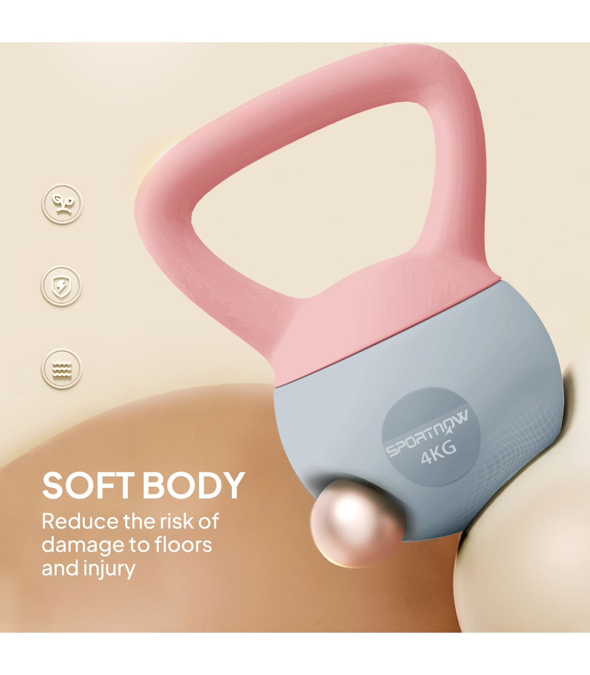 - Wide, ergonomic and non-slip handle, giving you complete control when handling the kettlebell
