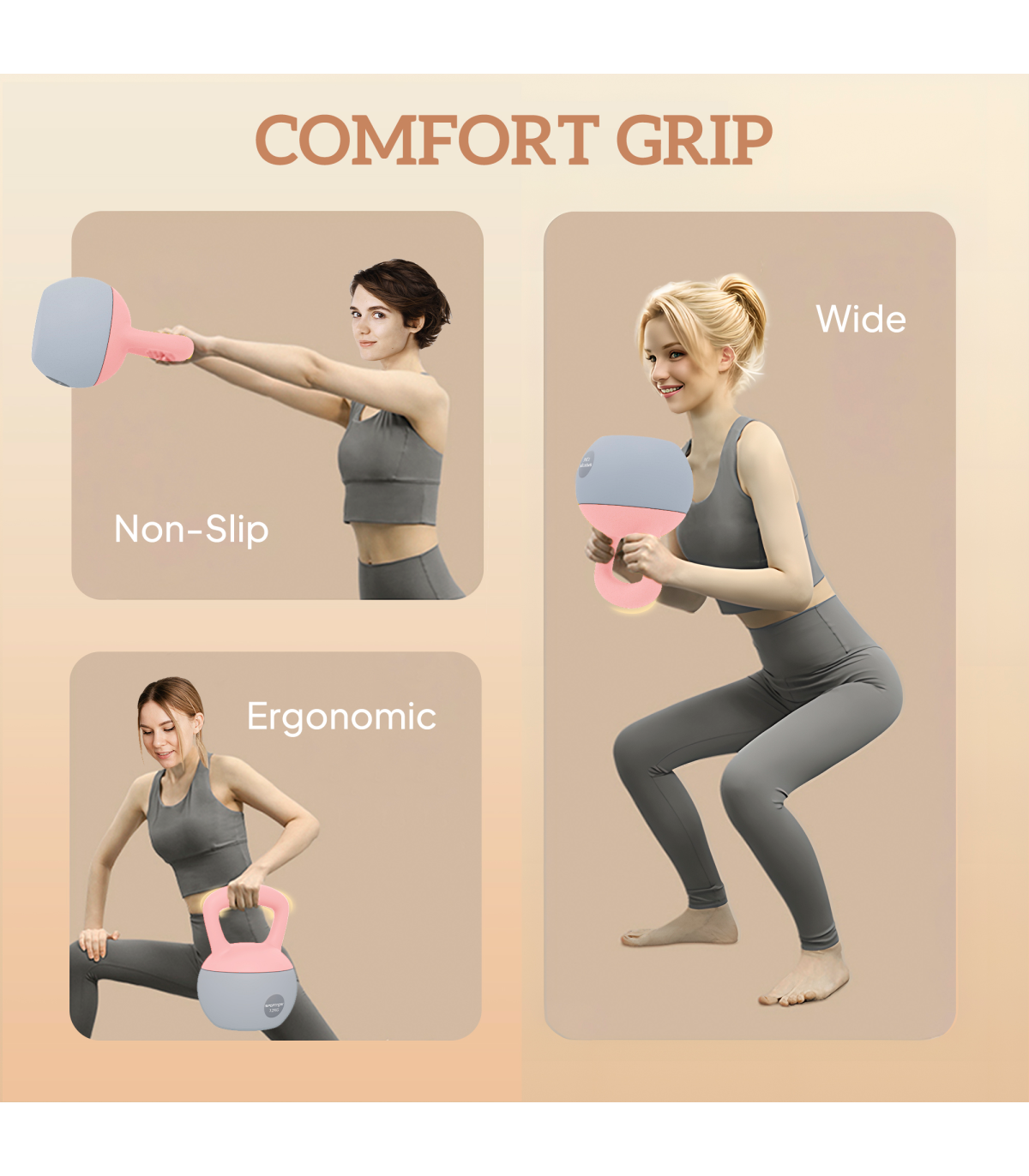 - Wide, ergonomic and non-slip handle, giving you complete control when handling the kettlebell