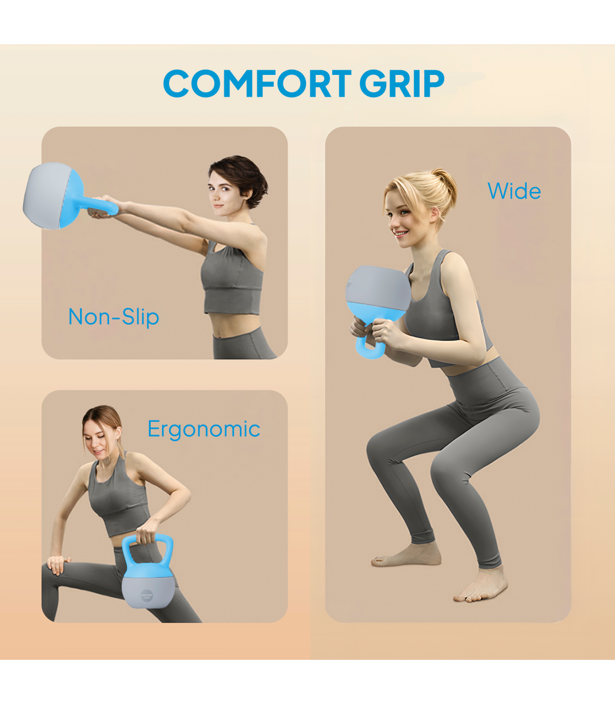 - Wide, ergonomic and non-slip handle, giving you complete control when handling the kettlebell
