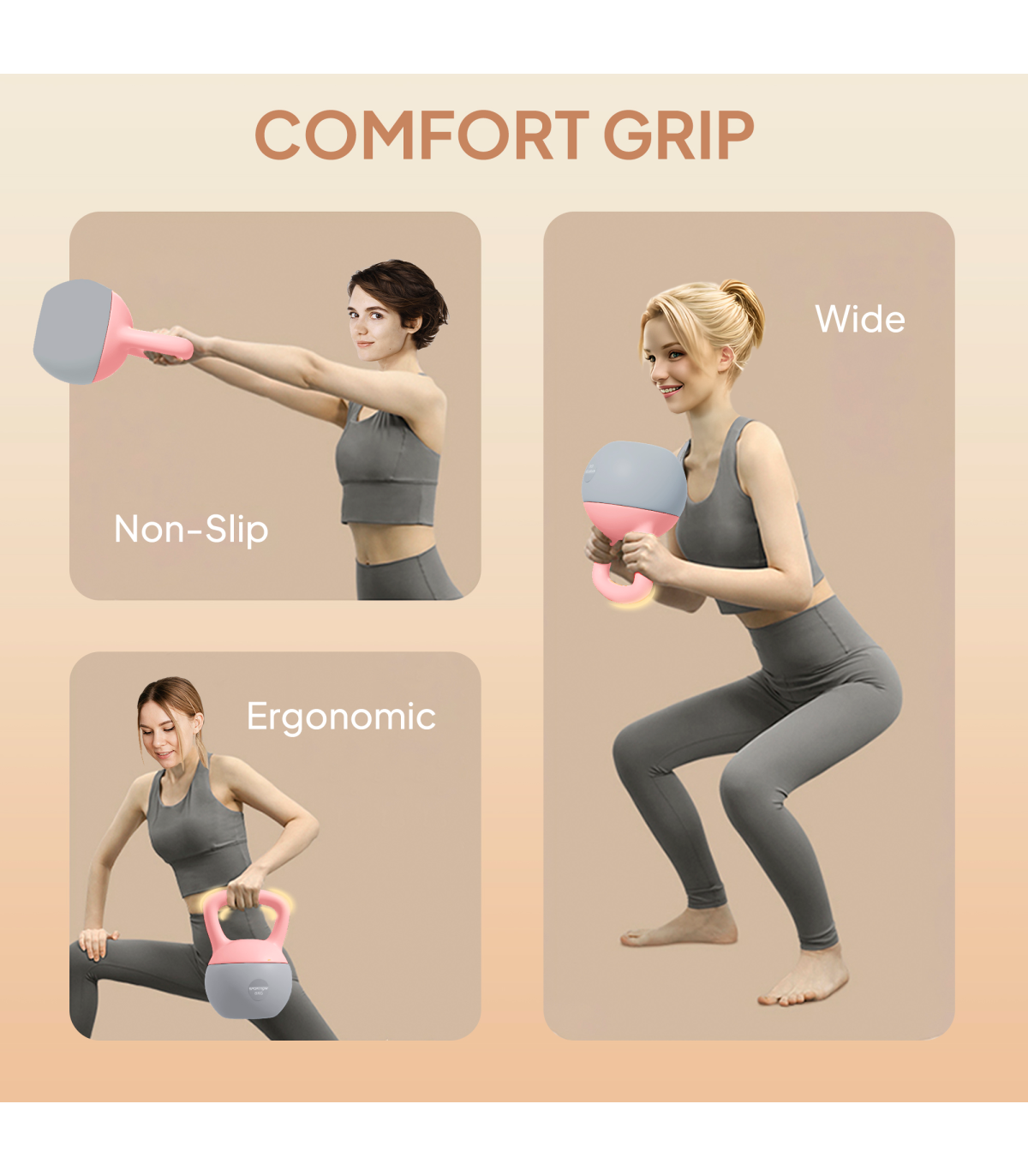 - Wide, ergonomic and non-slip handle, giving you complete control when handling the kettlebell