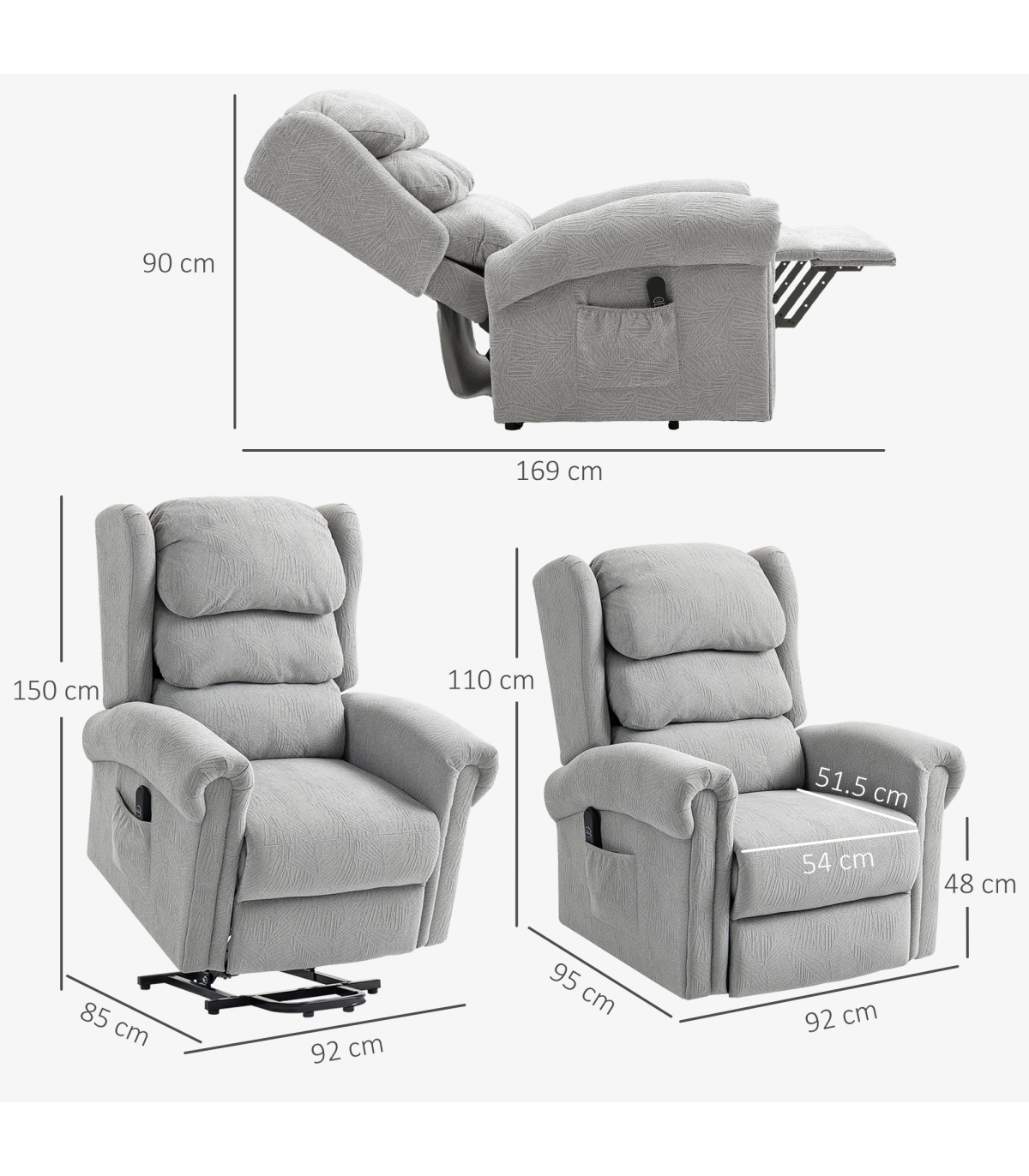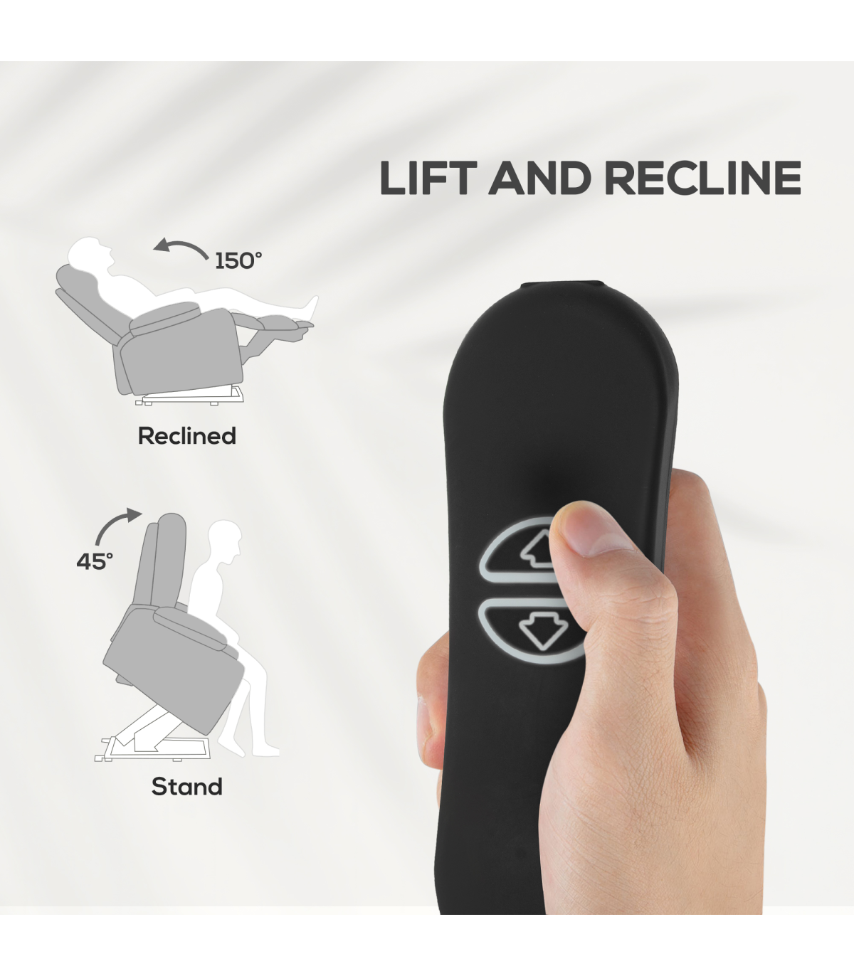 - Lift chair back reclines to maximum 150° angle, with footrest: lifts your body up and relaxes into position