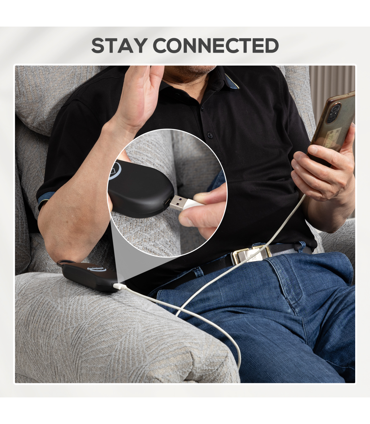 - Remote controlled, with two side pockets, USB charging port on remote control