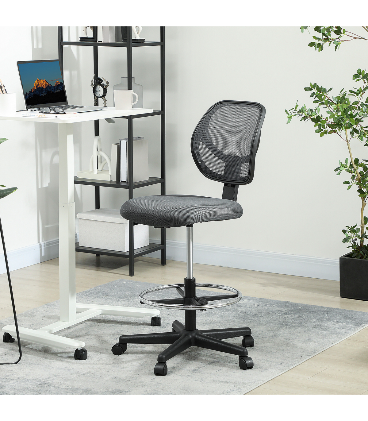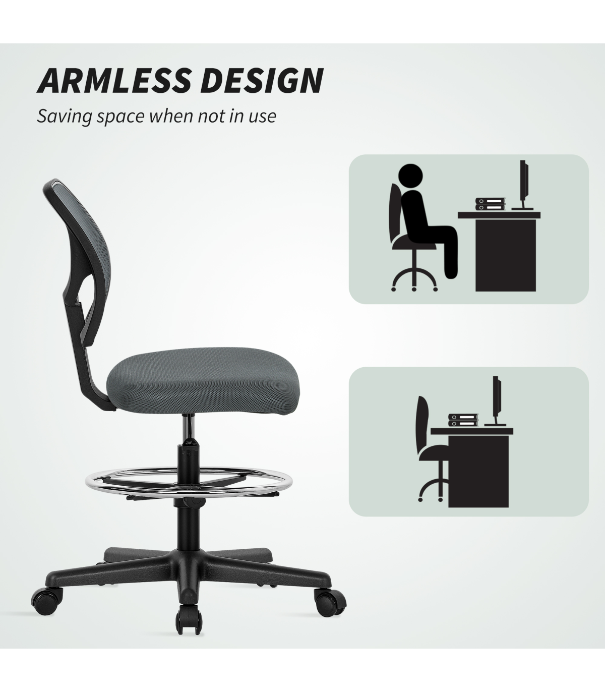 - Ergonomic features include curved back, swivel seat, adjustable height and padded seat