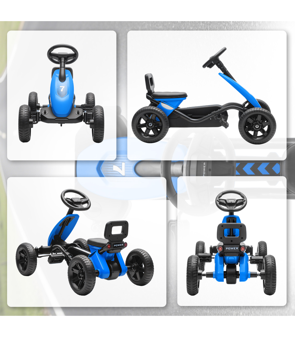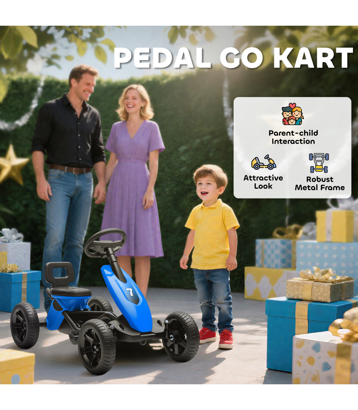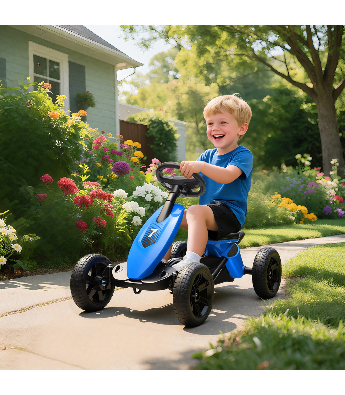- Bright Blue go-kart design looks fun, sporty and exciting, capturing the imagination