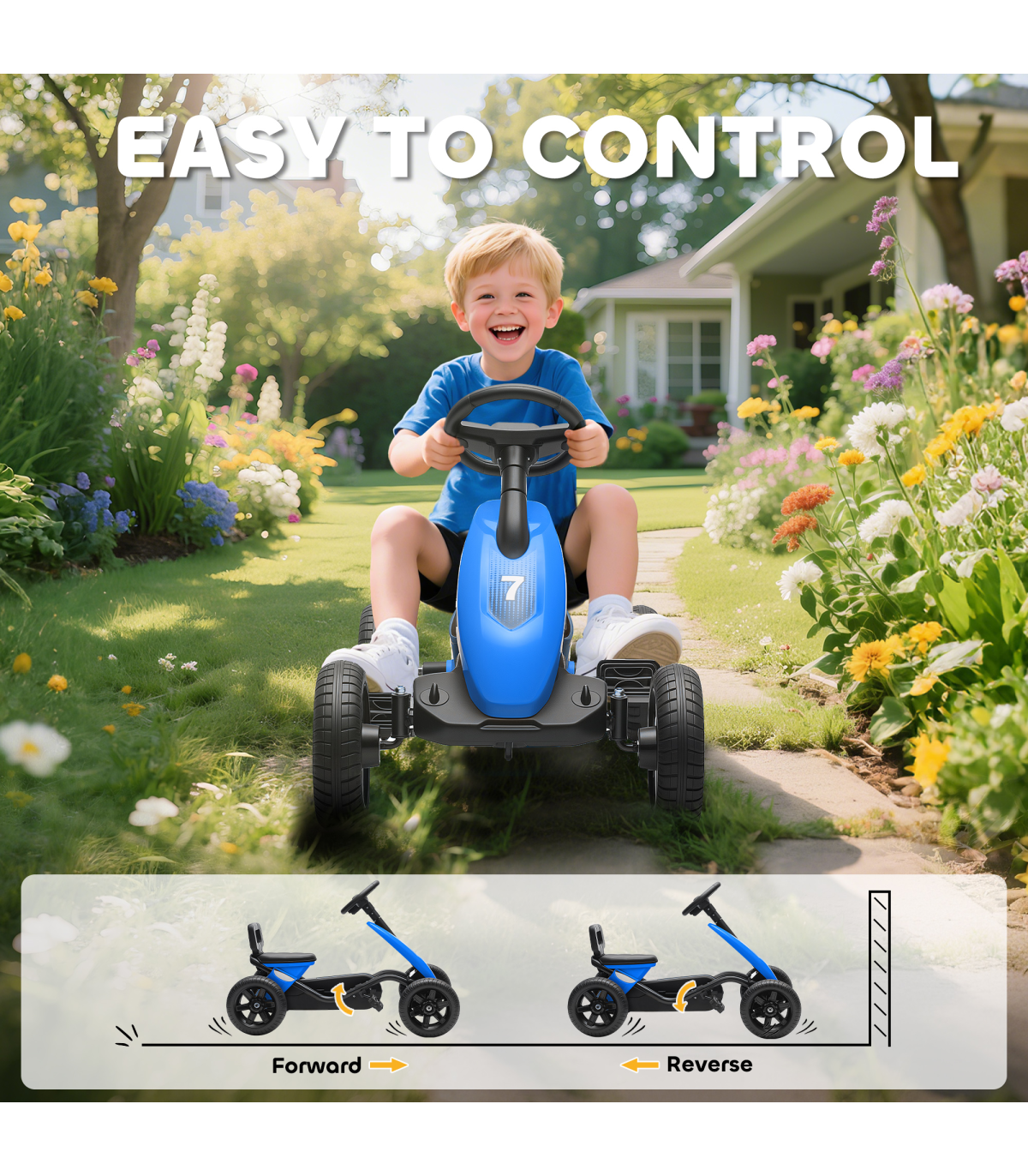 - Easy pedal controls let kids move forwards and backwards with confidence