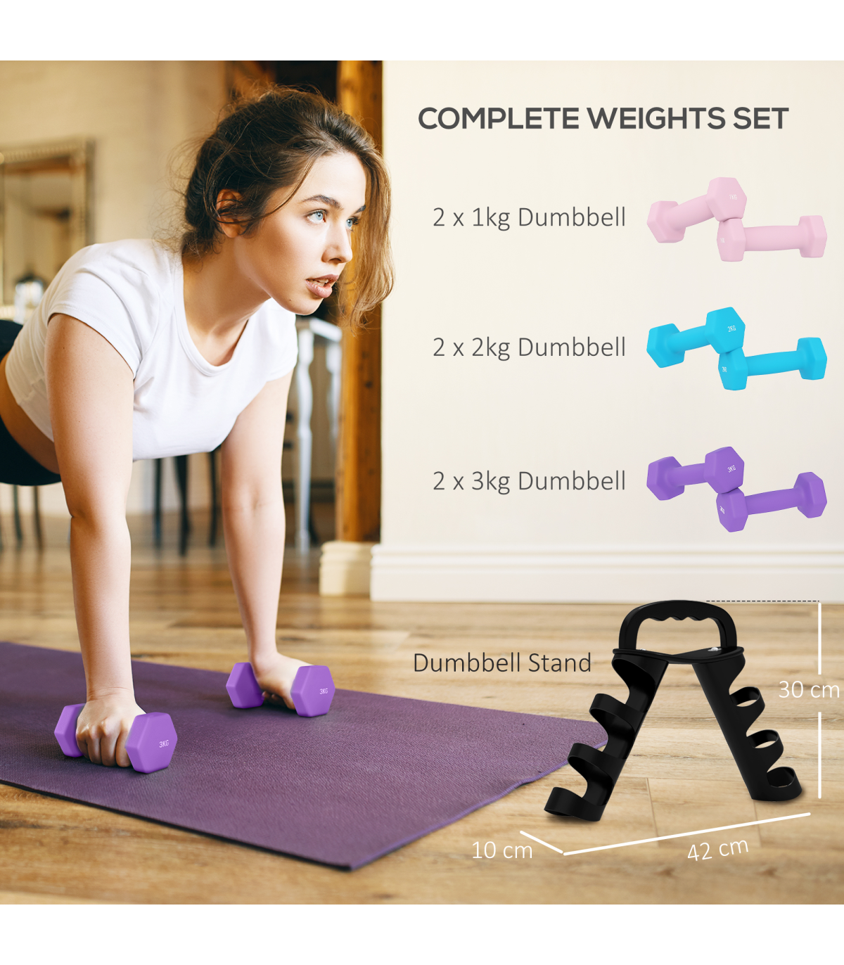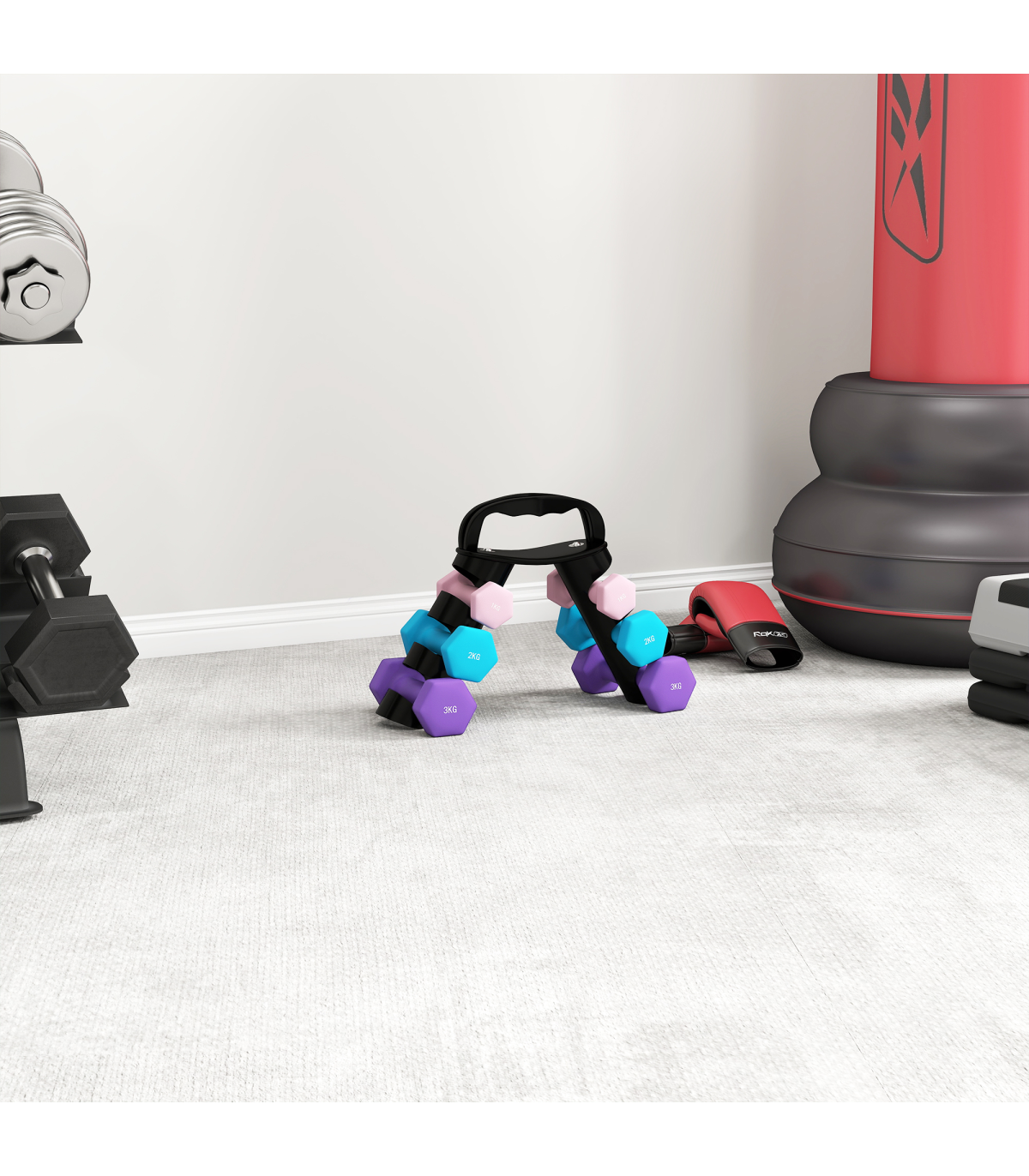 - Complete weight set: Two 1kg, two 2kg and two 3kg pairs