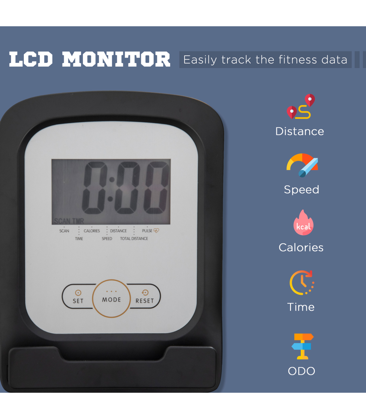 ● Multifunction LCD display screen: scan, duration, speed, distance, calories burned