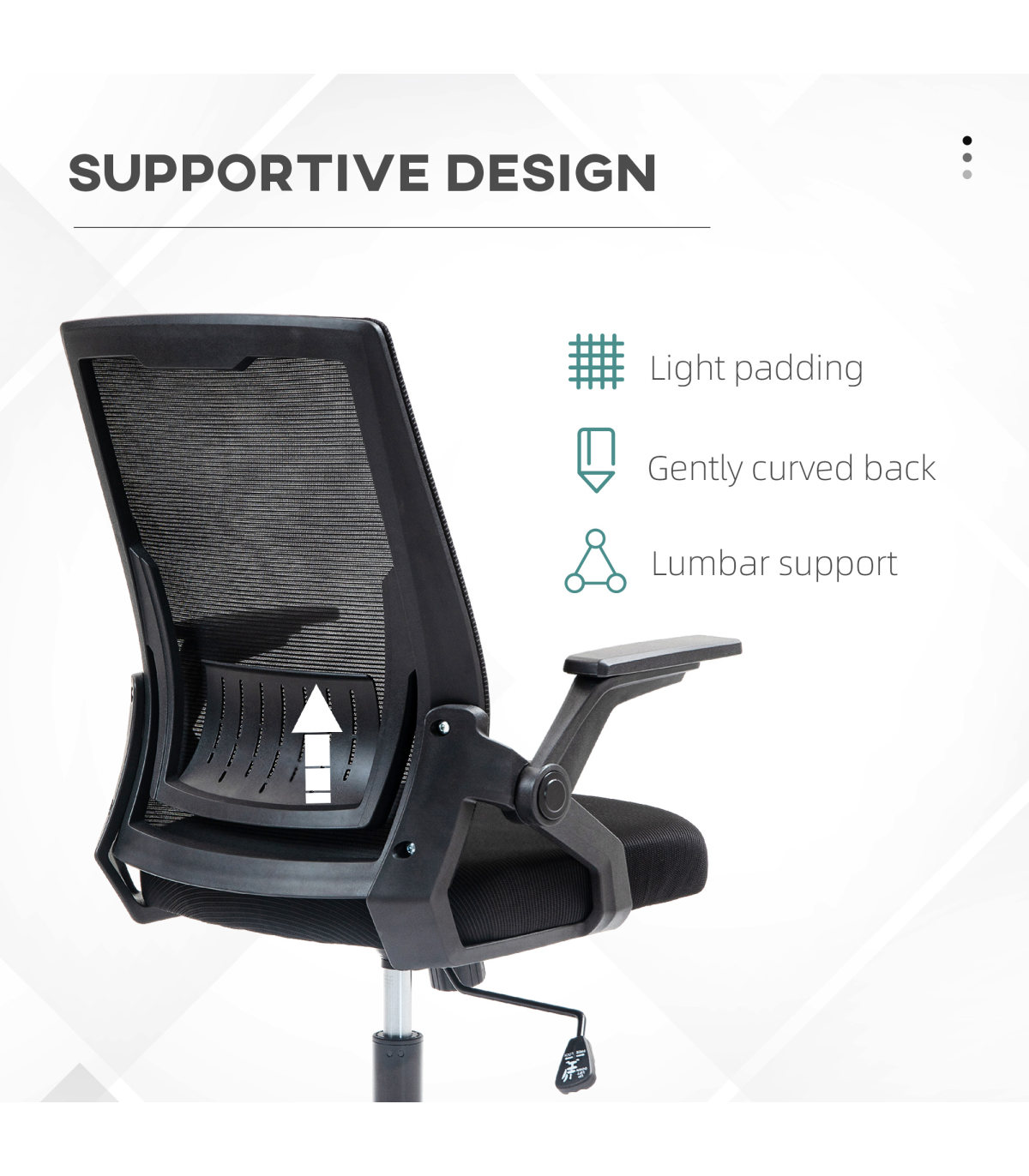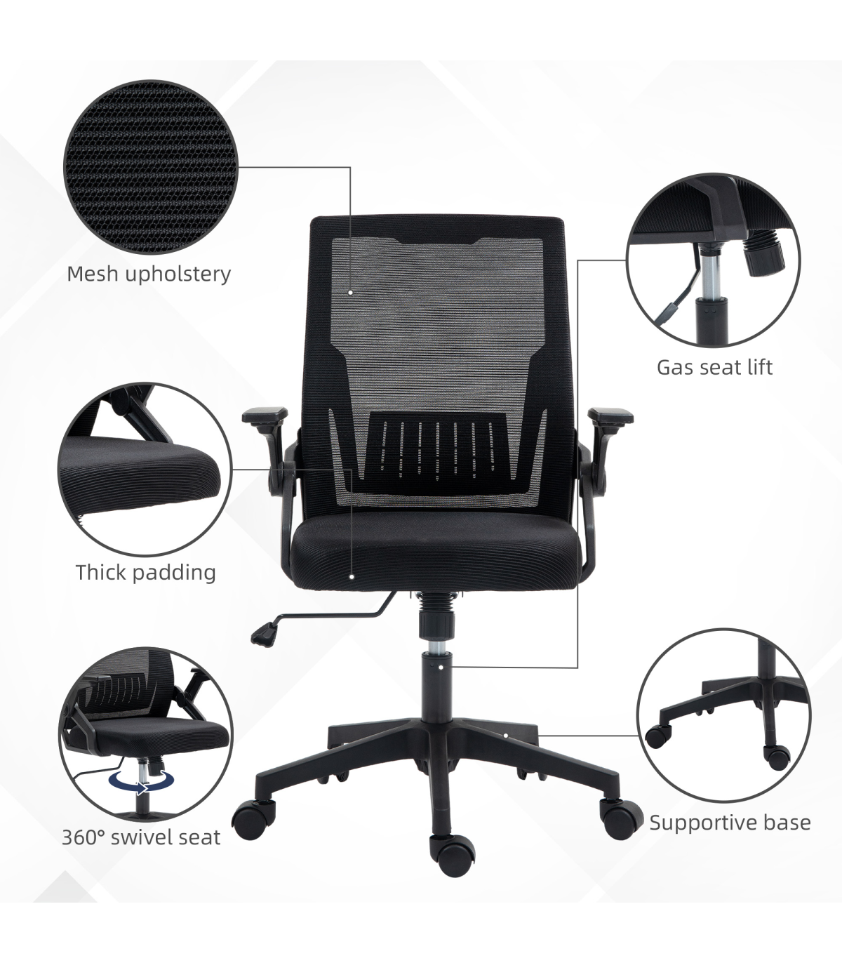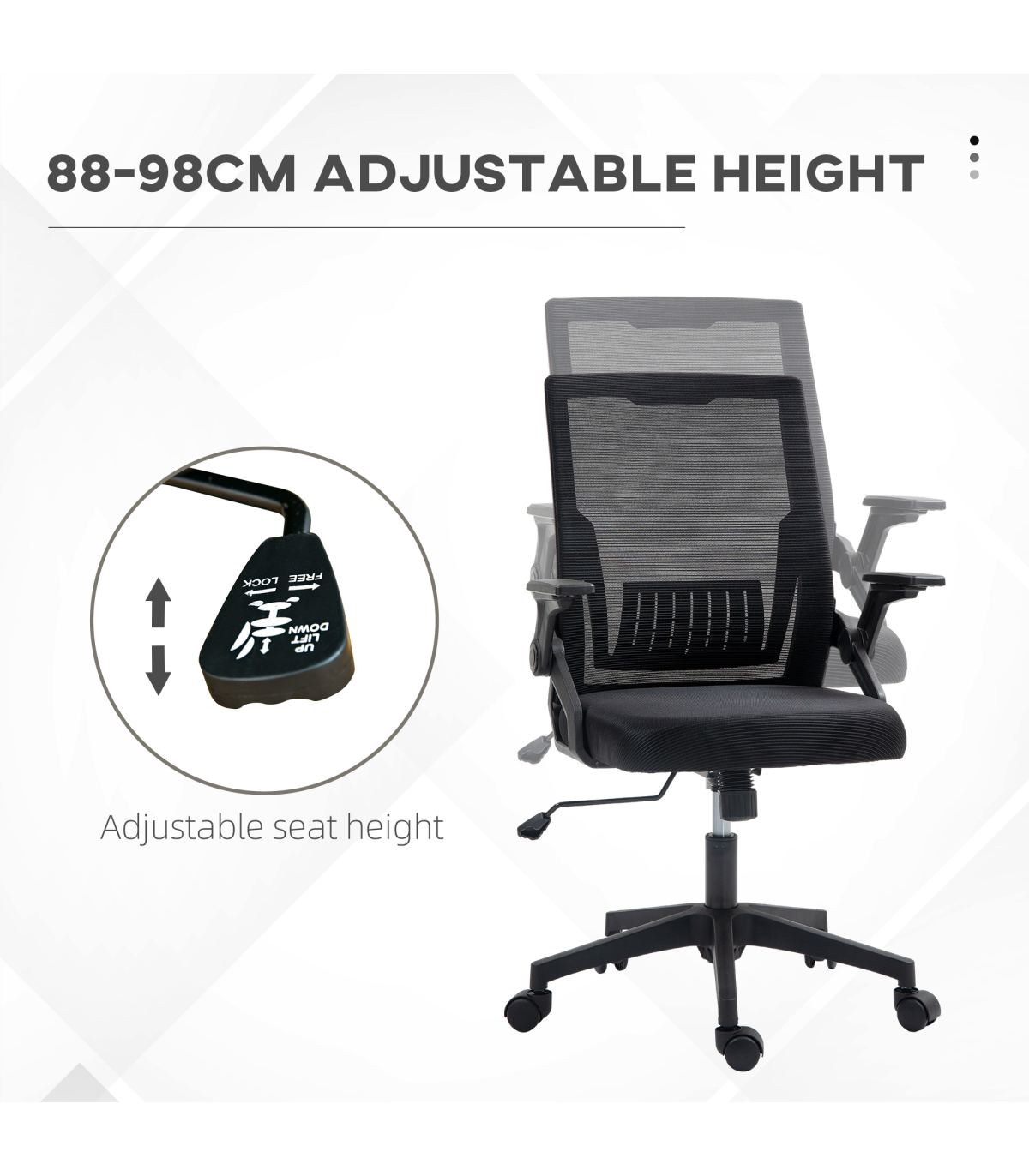 - Flip-up armrests to tuck underneath desk easily