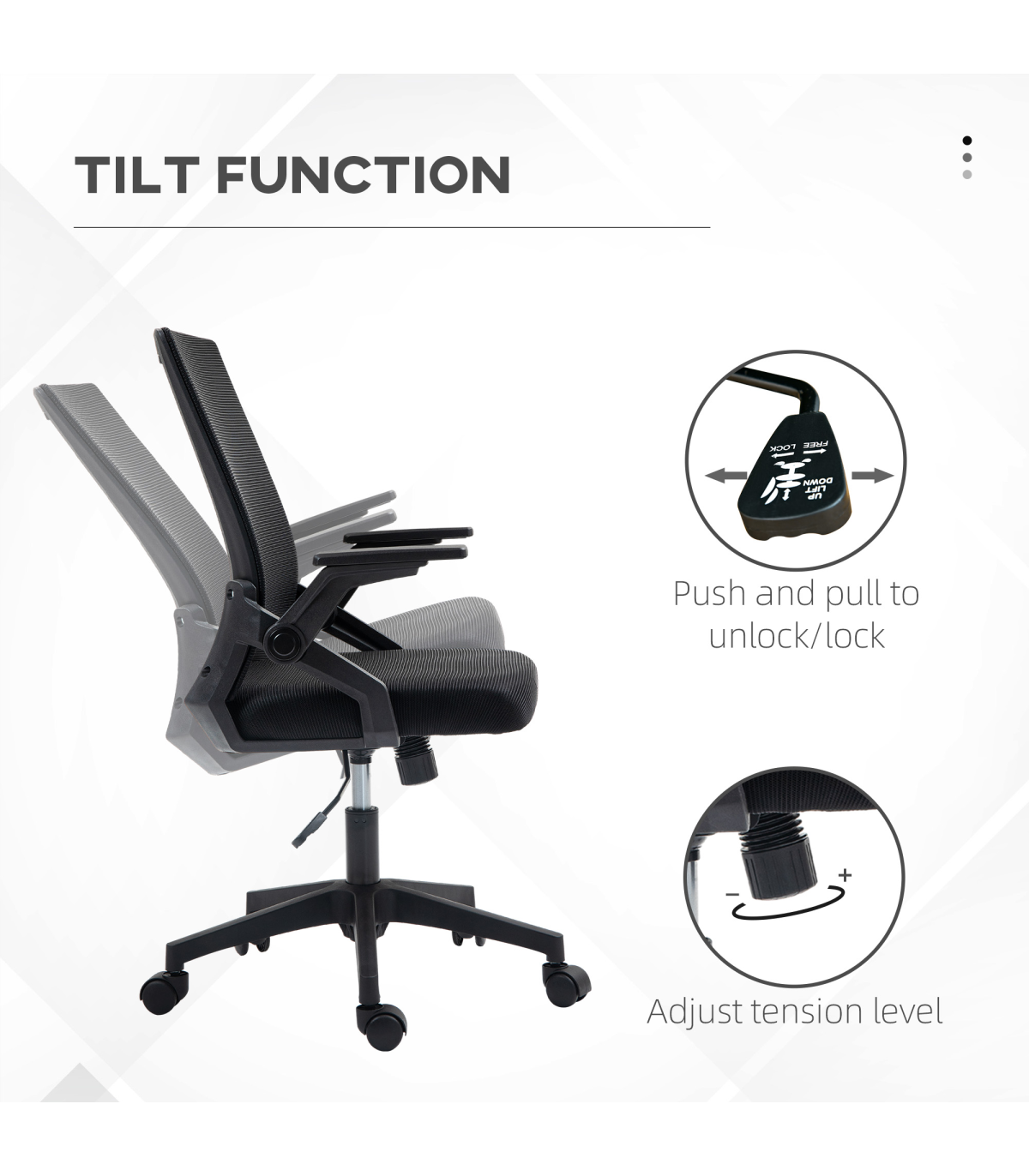 - Take a break and relax with the tilting, whenever