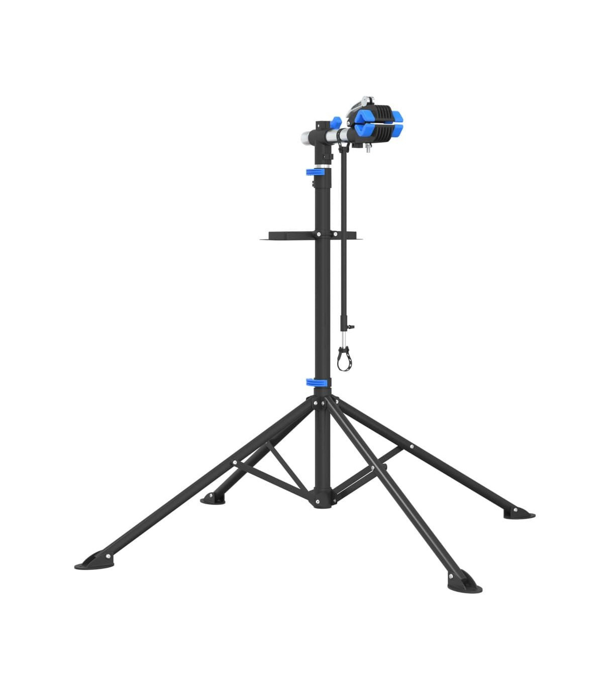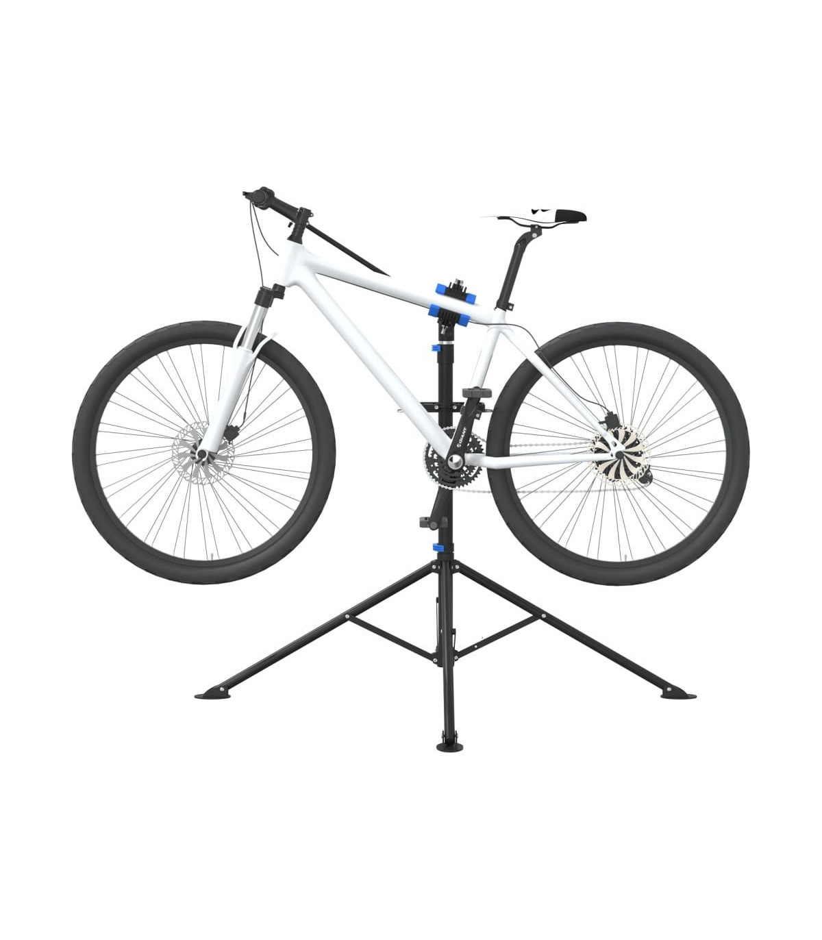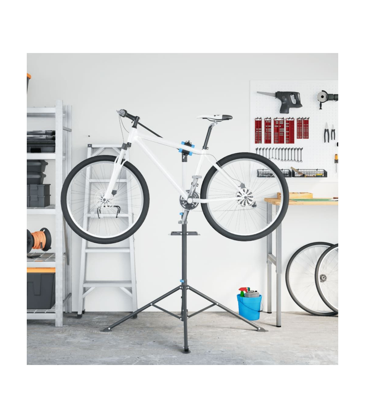 This bike repair stand is perfect for various tasks such as fixing flat tyres, lubricating the chain, cleaning, and making minor adjustments to your bike. 360° rotatable clamping jaws: With the 360-degree rotating clamping jaws, you can precisely navigate your bike, enabling you to work comfortably and efficiently.Height adjustable: The height of the bicycle repair stand can be easily adjusted with the quick-release handle, allowing you to position the bike at a comfortable working height.Quick-release and foldable: The lightweight cycle repair stand features a convenient quick-release system, making it easy to set up and fold down into a compact size for easy storage and transport when not in use.Convenient magnetic tool tray: This bike work stand features a magnetic tool tray, so the repair tools you need are always easily accessible.Fixing rod for stability: The telescopic fixing rod stabilises your bike's front wheels or handlebars, preventing any shaking or swinging during repairs.
