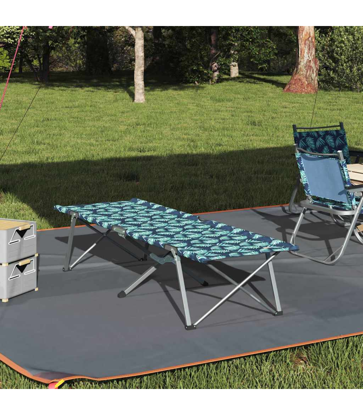 vidaXL Folding Camping Bed Leaf pattern 62 x 194 x 42 cm Oxford fabric