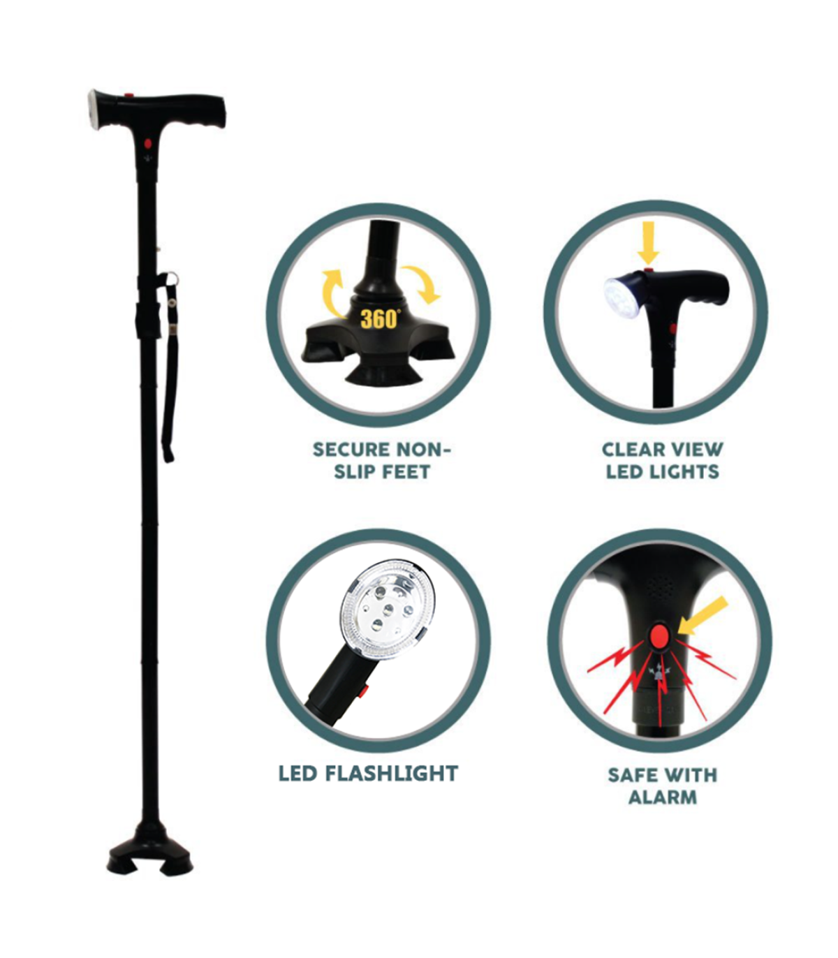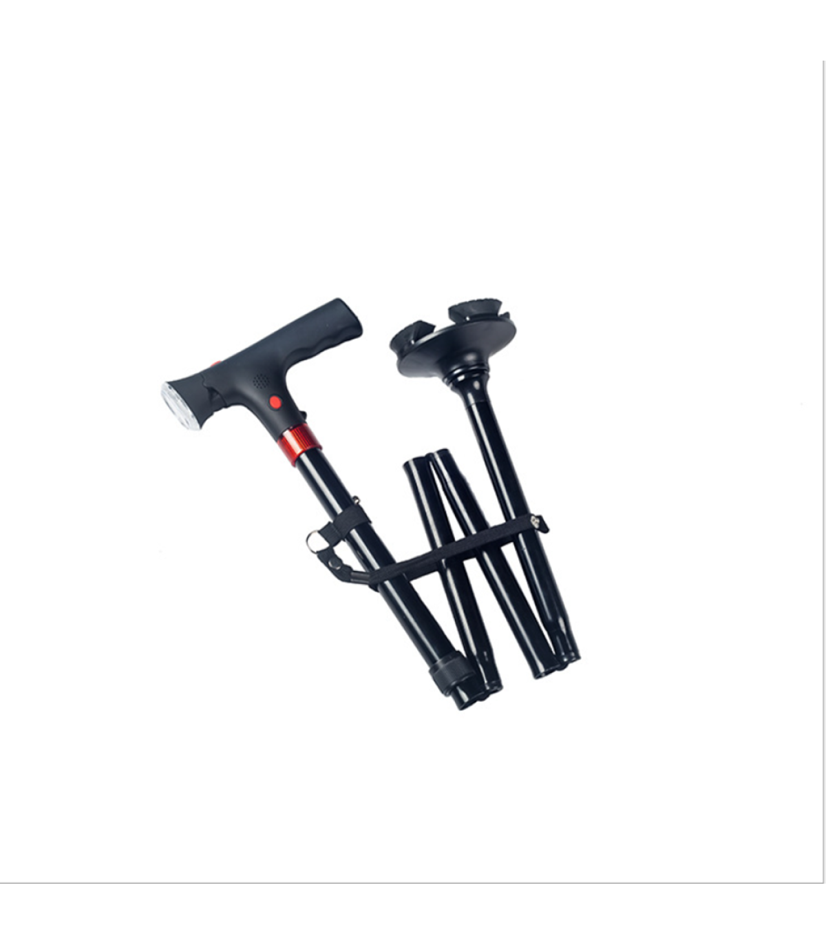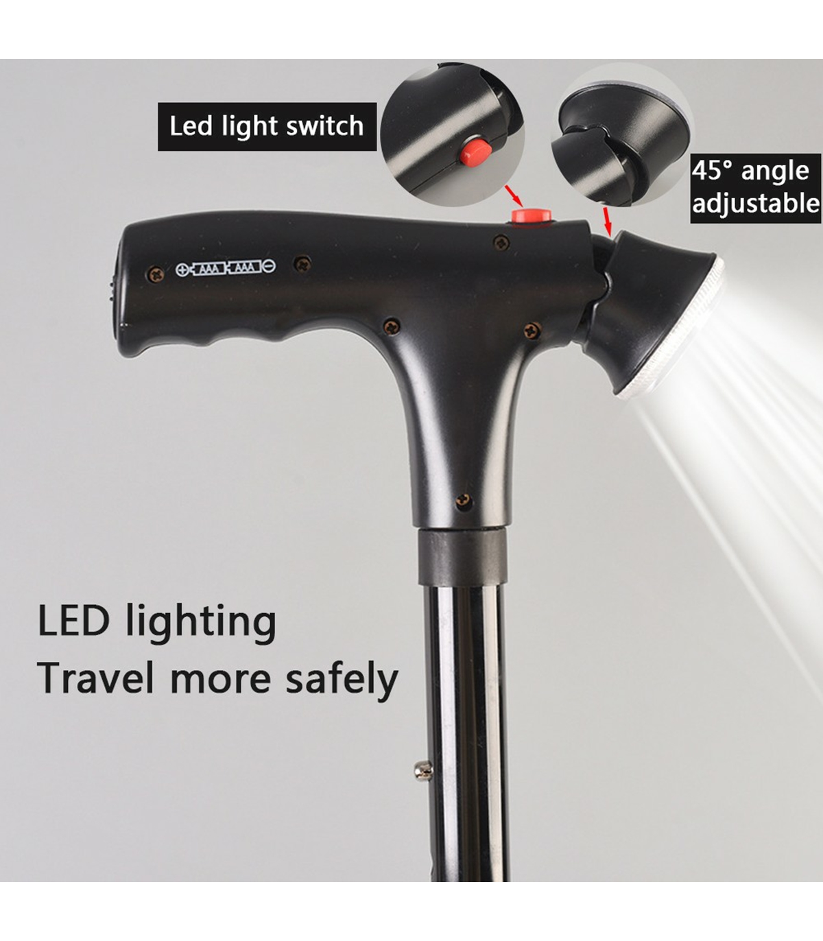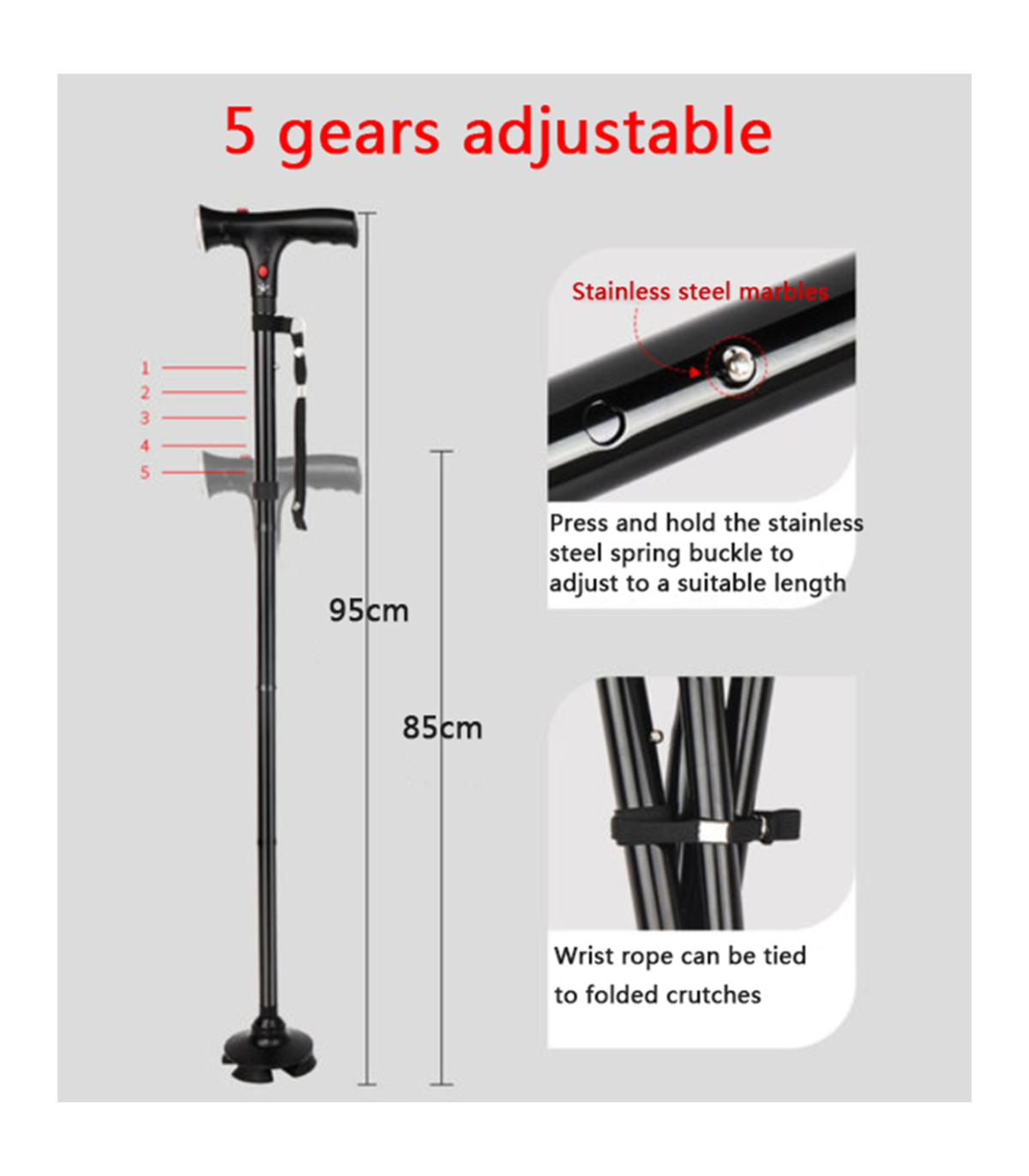 Camping Hiking Walking Stick 5-Level Height Adjustable Folding Walking Cane with LED Light And Alarm
