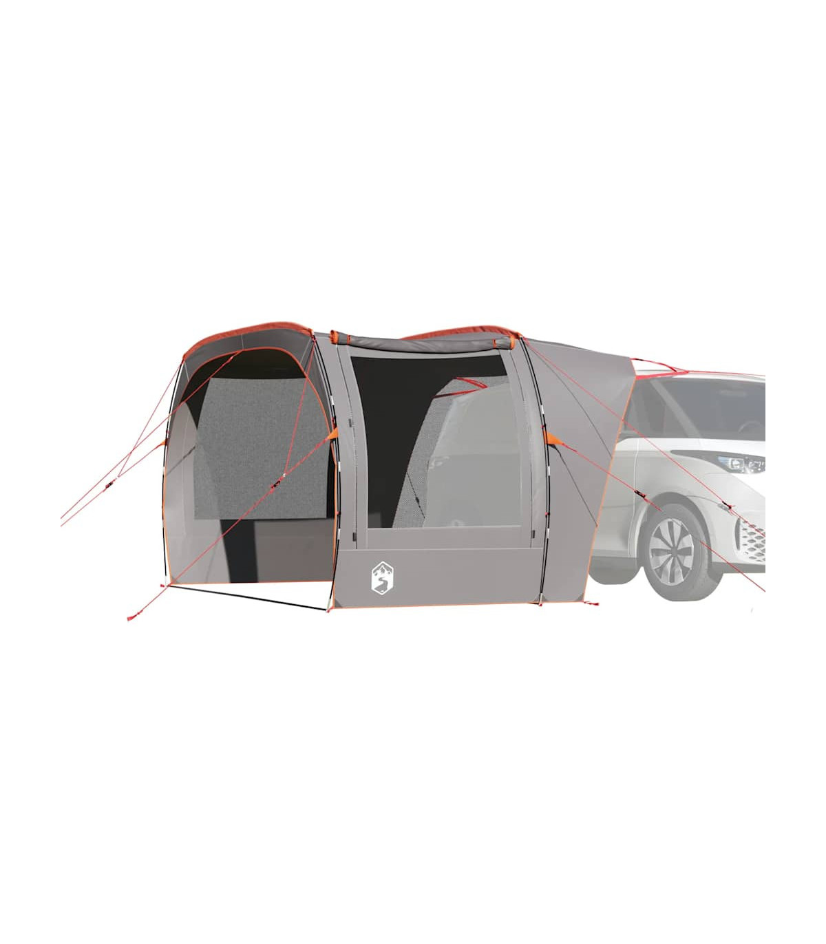 This car tent can quickly and easily upgrade your vehicle to a practical and comfortable camping home, offering flexibility and extra space on camping holidays, festivals, and road trips. Waterproof: This camping tent, made from polyester with a PU coating, is waterproof and wind resistant. Easy to set up: The tent features robust rods and webbing straps that easily anchor it to the ground and connect it to your car, eliminating the need to hunt for rocks or other heavy objects to secure it.Stable and safe: Metal stakes and guy ropes provide secure anchoring for the camping fence, ensuring stability even on windy days at the beach or campsite.Wide applications: This tent fits most car models, making it an excellent companion for outdoor adventures such as camping, hiking, and other outdoor events. Lightweight and portable: The foldable and lightweight design allows you to easily pack the tent and store it in the included carry bag for easy transport. Warning:Keep all flame and heat sources away from this product fabric.