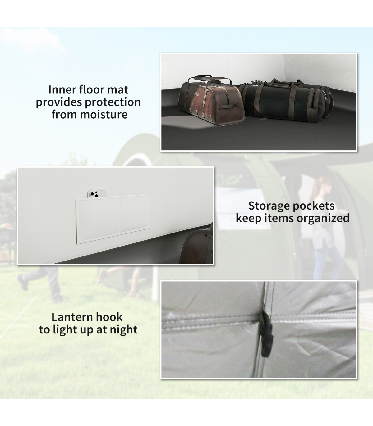 ● Inner floors to keep you dry