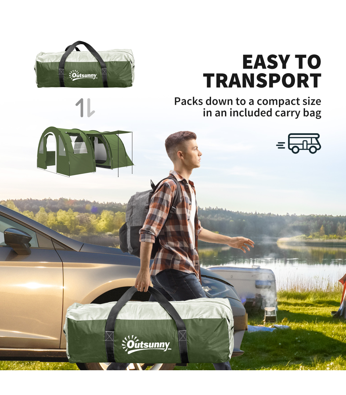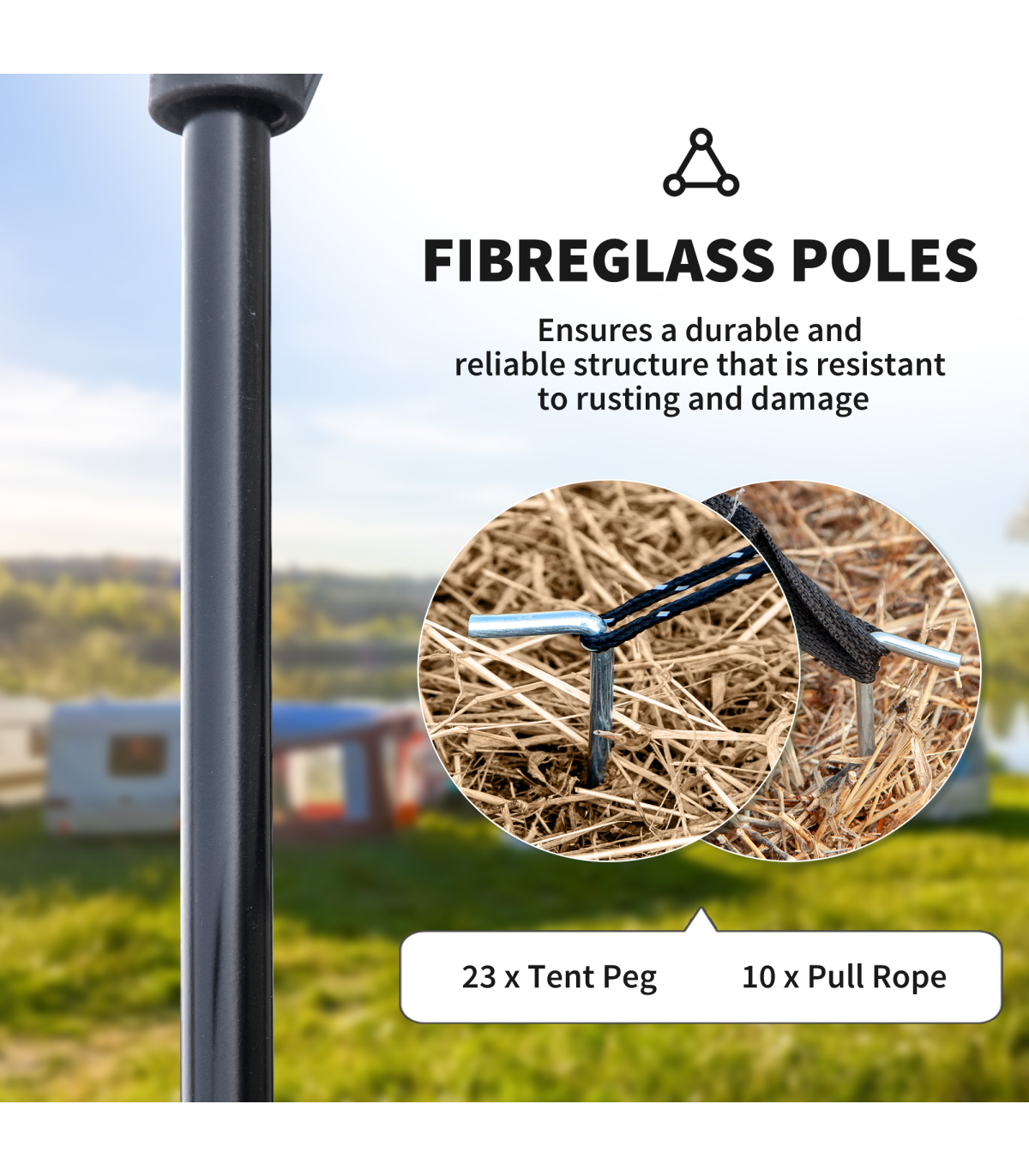 ● 25 ground stakes, ten guy ropes and carry bag included