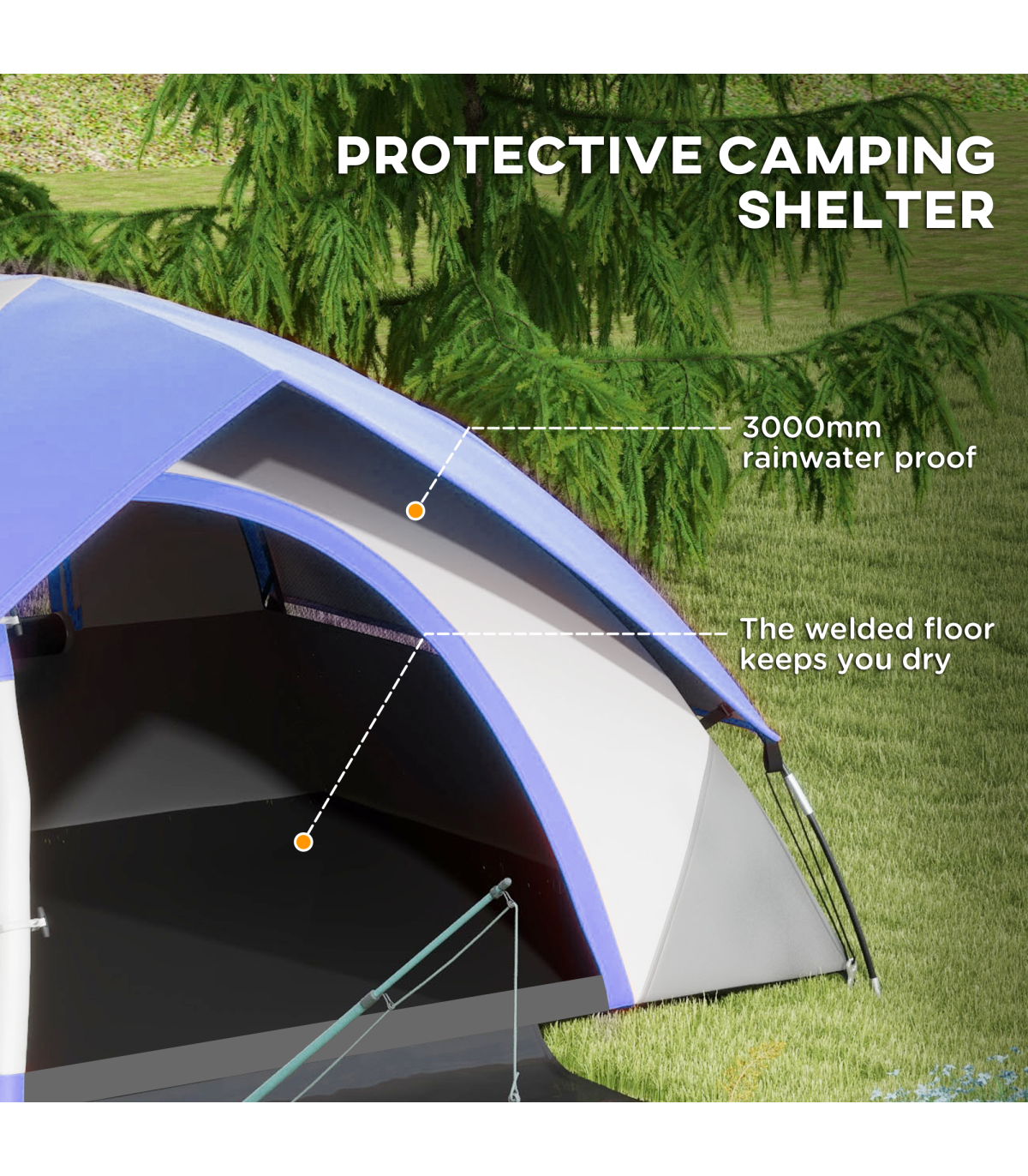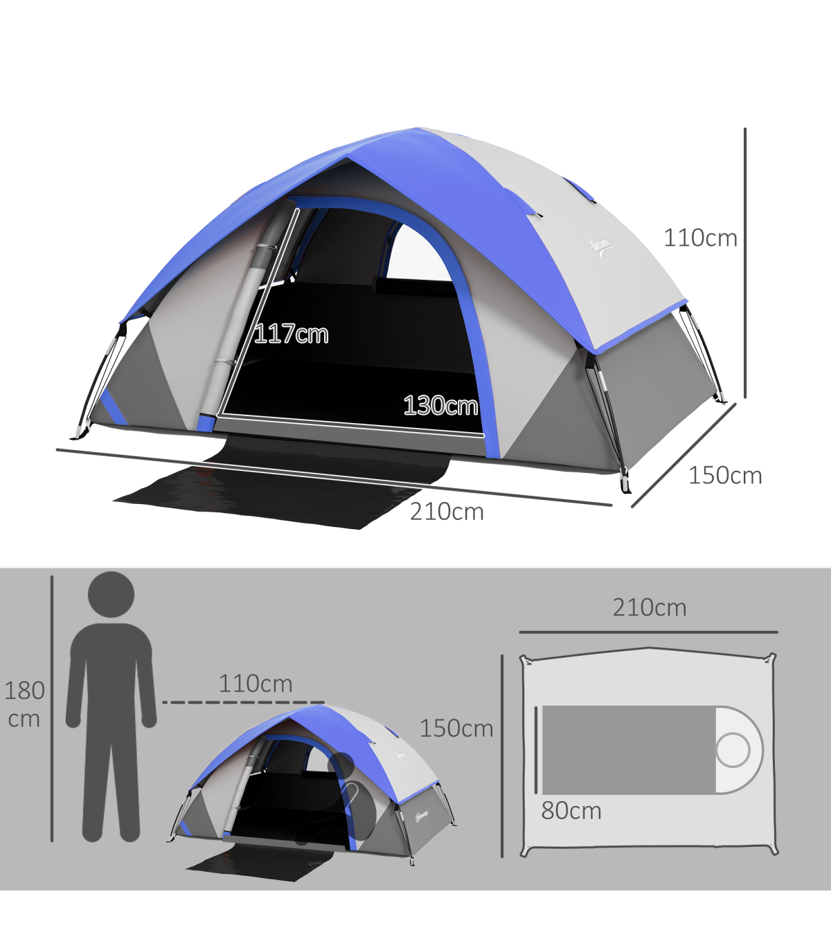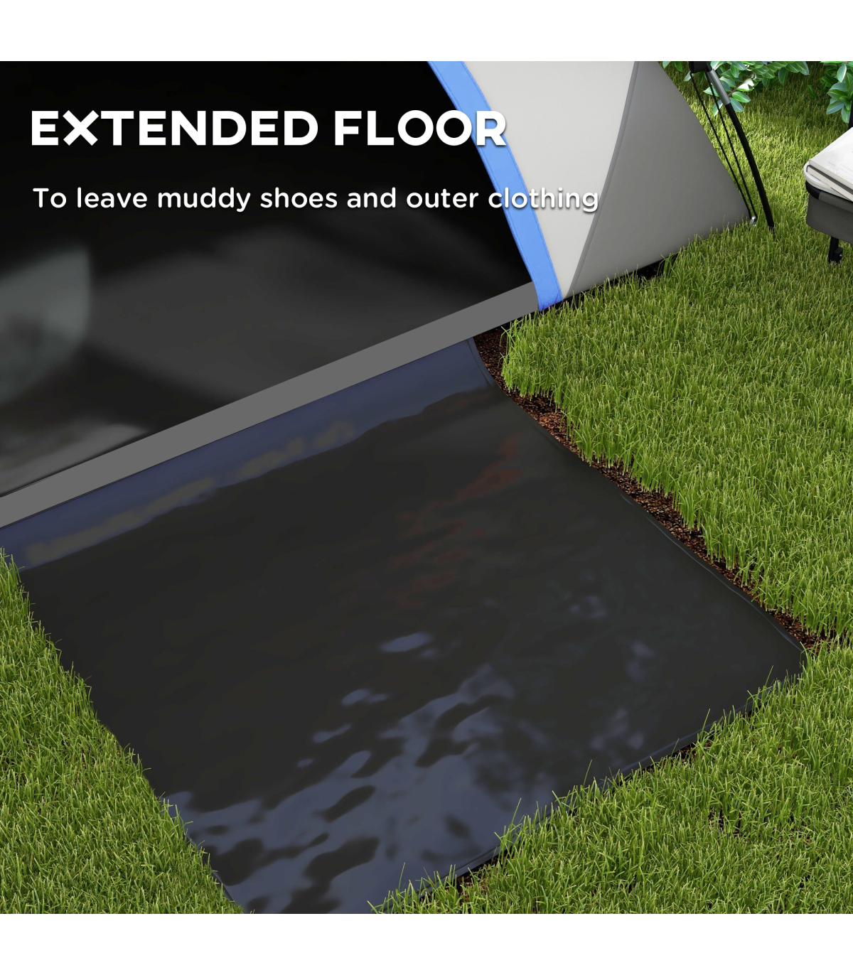 ● Sewn-in groundsheet, with front floor panel for dirty shoes and clothing