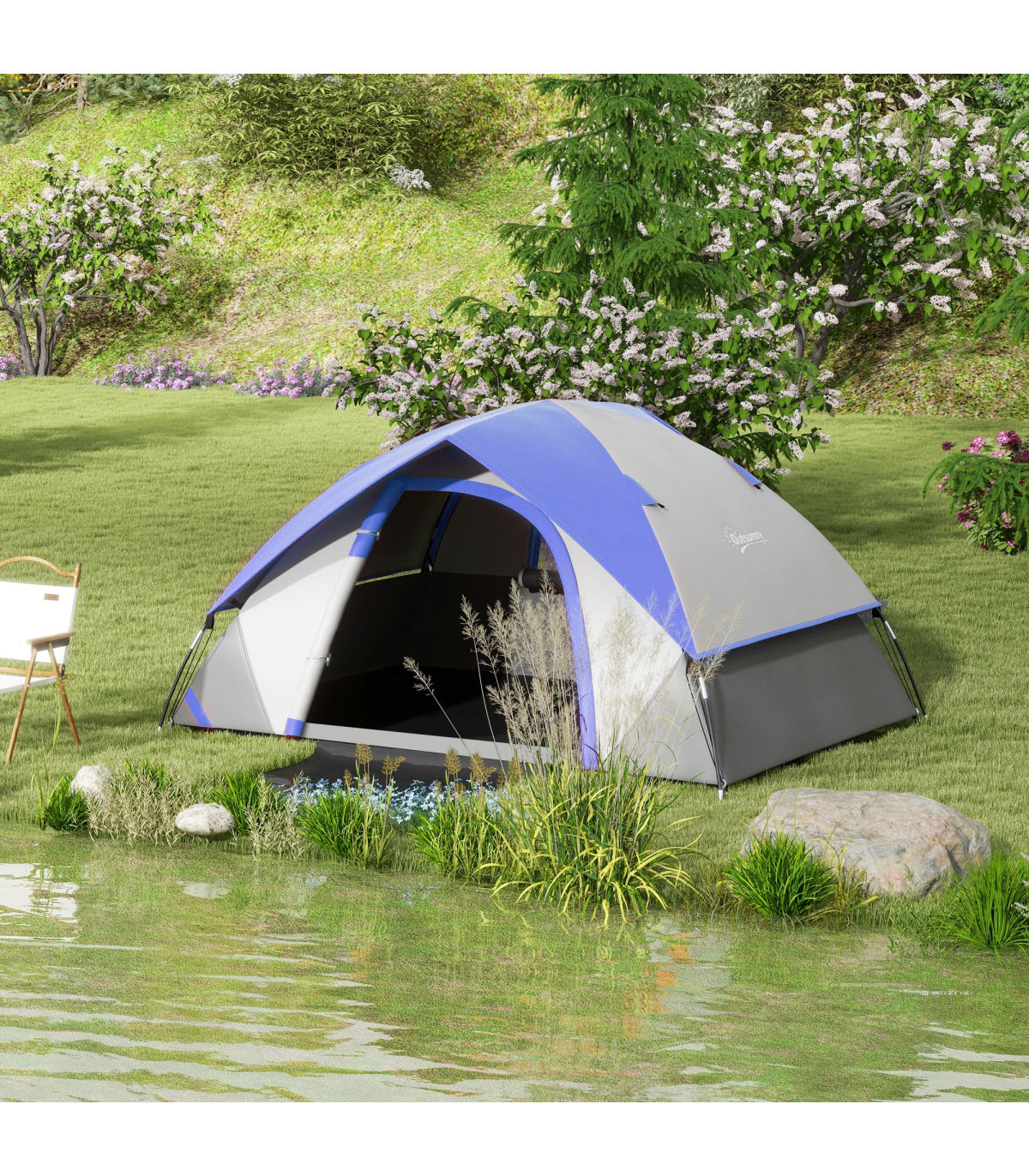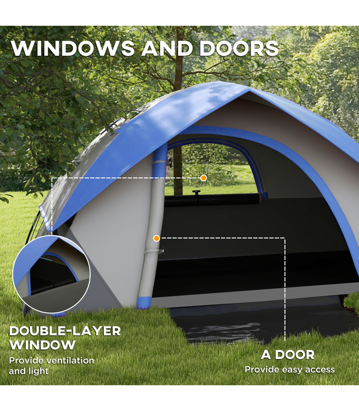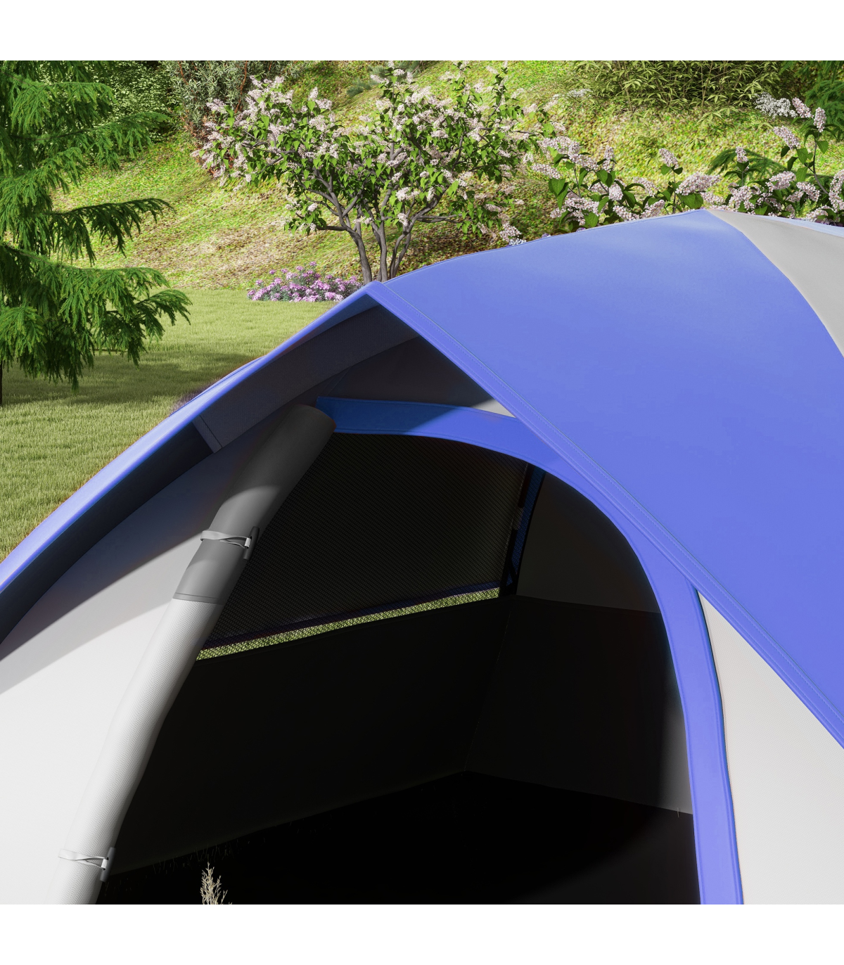 ● Sewn-in groundsheet, with front floor panel for dirty shoes and clothing