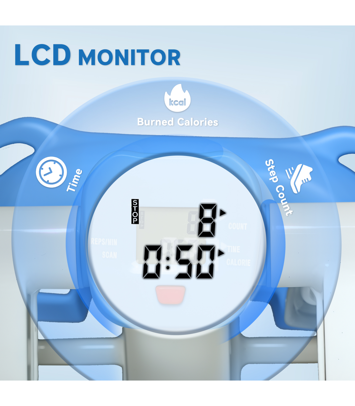 ● LCD screen on front counts and displays stats