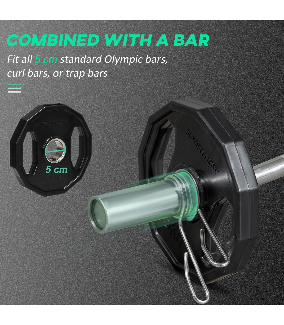 ● Features a central hole of Dia. 5 cm/2 inch for adaptation to weight bars