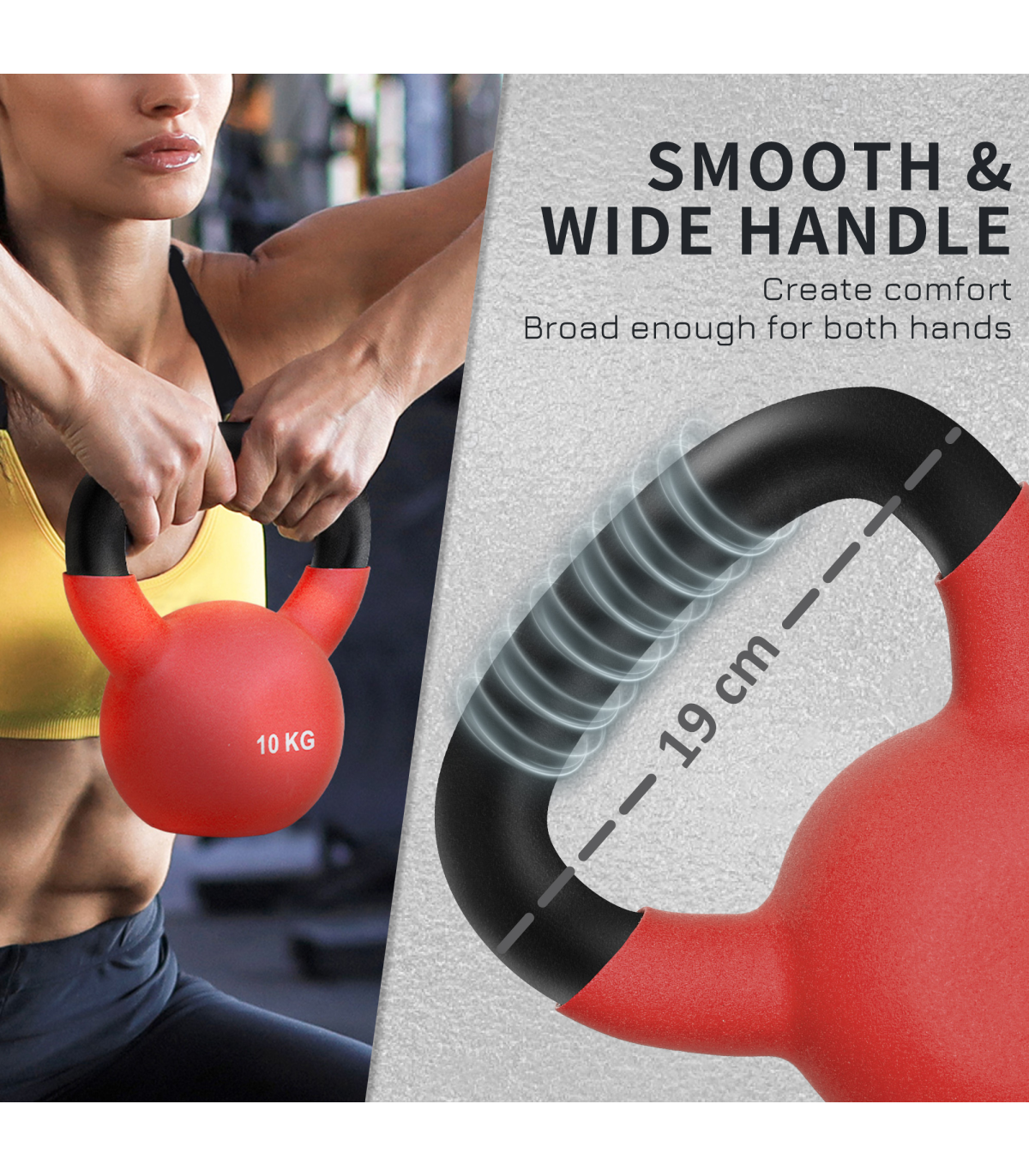 ● Wide, ergonomic and non-slip handle, giving you complete control when handling the kettlebell