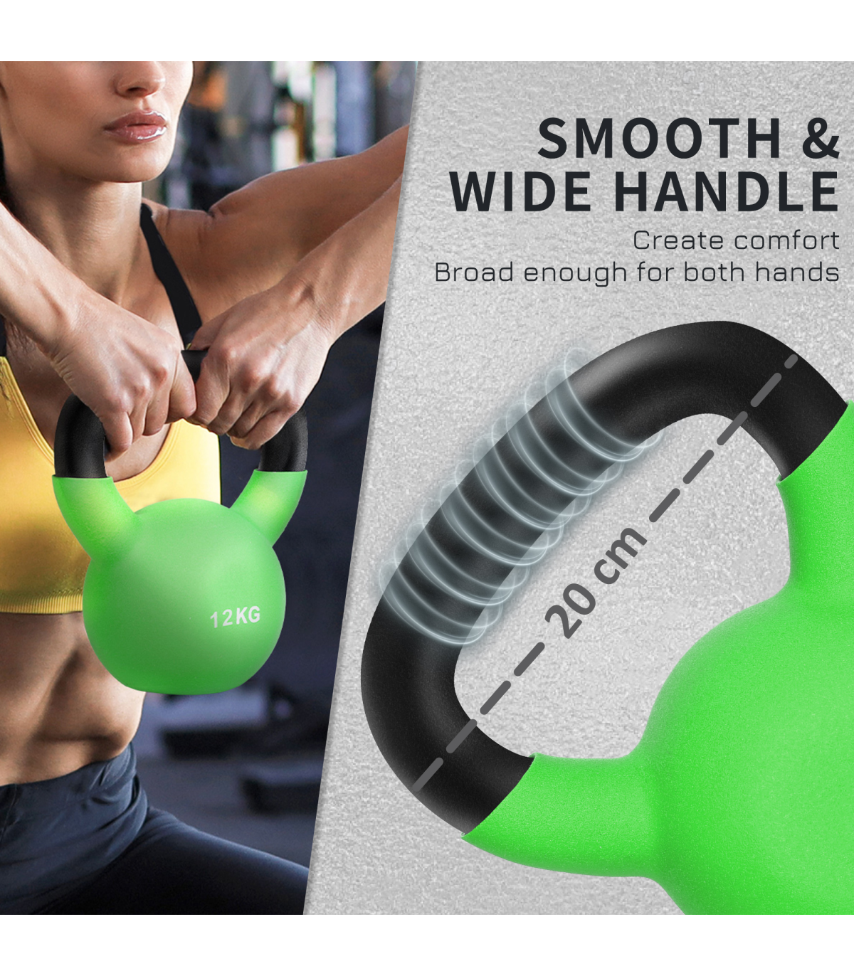 ● Wide, ergonomic and non-slip handle, giving you complete control when handling the kettlebell