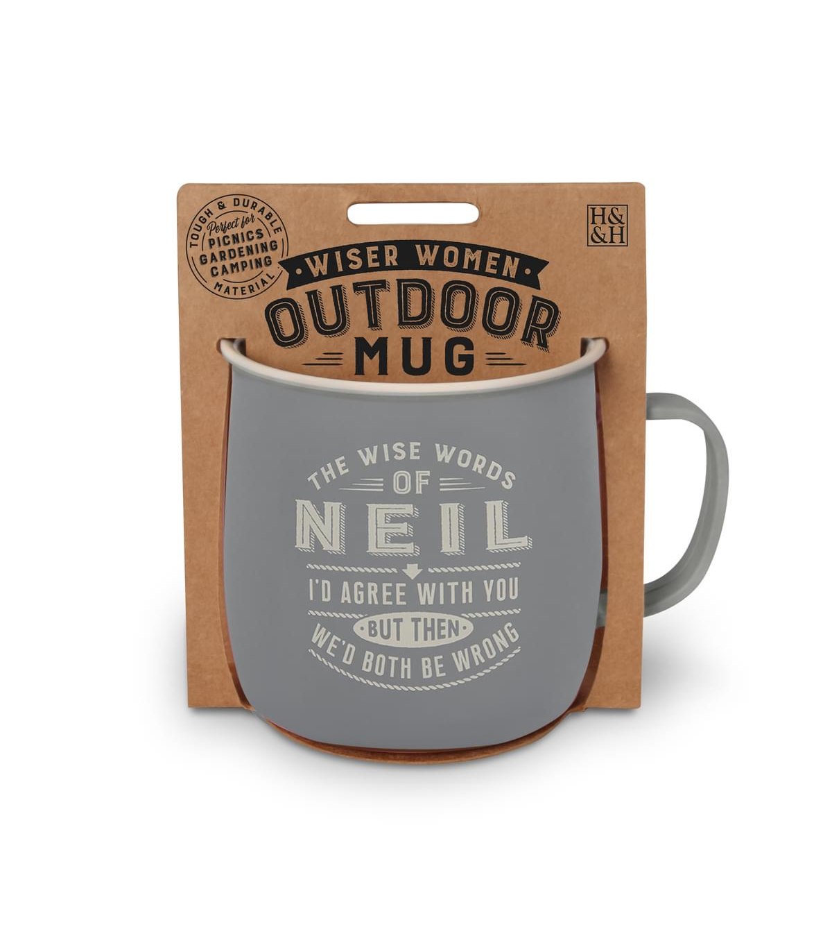 Perfect for days in the garden, camping or festivals. Wise Men and Wiser Women Outdoor mugs are made from sturdy, food-grade melamine to withstand hot drinks easily. The cool retro mug shape is matt on the outside and shiny gloss inside. Featuring personalisation with the most popular male and female names. Also perfect for family and friends with fun and inspirational text to bring a smile to the recipient of this great gift idea. PLEASE NOTE: These items are pre-personalised. The item you receive is the name or title that you have selected. Items are not personalised to order and we do not offer bespoke customisation.