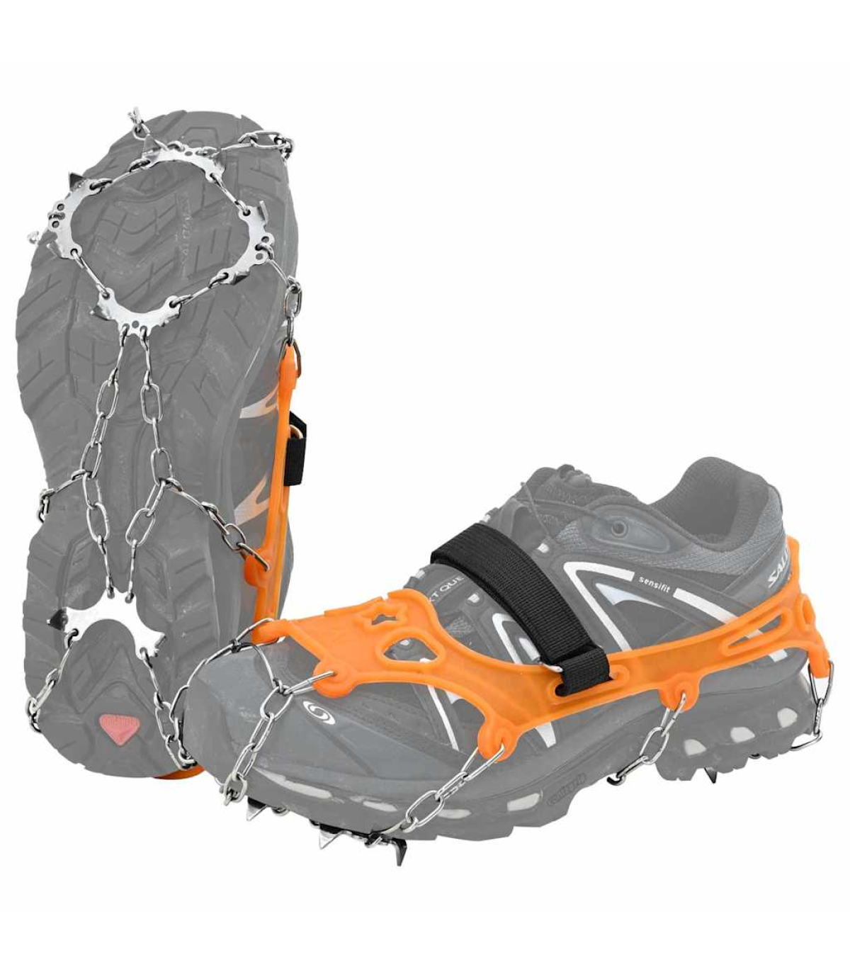 These practical ice cleats for shoes are designed to enhance traction during outdoor winter activities. Their form ensures reliable performance on icy surfaces, making them ideal for hiking on trails with compact snow or even quick urban commutes. Compact in design, these cleats come with an ergonomic structure that adapts seamlessly to most outdoor footwear for a secure fit. Whether you're ascending frosty hills or taking a winter mountain stroll, they ensure stability with ease. The cleats not only offer functionality but also exude a robust and sleek demeanor for the outdoor adventurer, dynamic trail runner, and the everyday walker. Thoughtfully constructed from thermoplastic elastomer combined with stainless steel components, these cleats are suited for extreme temperatures while providing a steady grip on slippery paths. Materials: Composed of high-grade thermoplastic elastomer and stainless steel, these materials offer consistent durability and performance. The elastomer base beautifully combines flexibility and resilience, supporting swift movements across various terrains. Meanwhile, stainless steel teeth ensure unmatched strength and long-term resistance, providing exceptional value paired with hassle-free maintenance. Included Components: Each purchase delivers a complete set of ice cleats and a convenient storage bag, allowing you to store your cleats securely when not in use. This thoughtful inclusion ensures that your package remains organized, while the bag protects the cleats from accidental damage and dirt. Features /Function /Design: Each cleat is equipped with 10 stainless steel teeth, augmenting grip efficiency on a variety of slick surfaces. Additionally, the hook-and-loop fasteners make them easy to put on and remove, enhancing user convenience, and confirming a snug fit across diverse shoe types, from hiking boots to trail runners. Recommended Uses: Primarily crafted for outdoor use, these cleats excel in crisp winter conditions, providing versatility necessary for hiking, fishing on frozen lakes, and even traversing trails paved with snow. Their robust design ensures unwavering performance across various sports-related endeavors and adventures. Care &Maintenance: Maintaining these ice cleats is straightforward and quick. After use, simply wipe them clean with a damp cloth to eliminate dirt build-up. When not in use, store them in their provided bag to ensure they remain in pristine condition for the next outing. Through this minimal yet effective routine, your ice cleats will stay in optimal condition for future excursions.