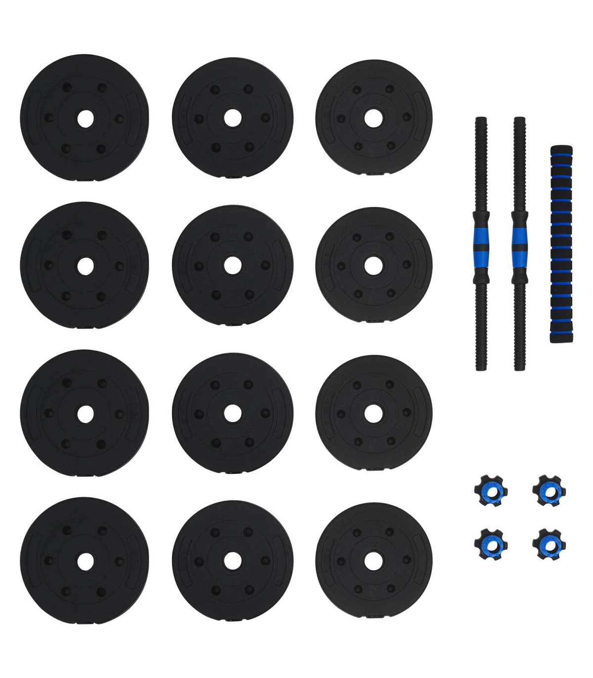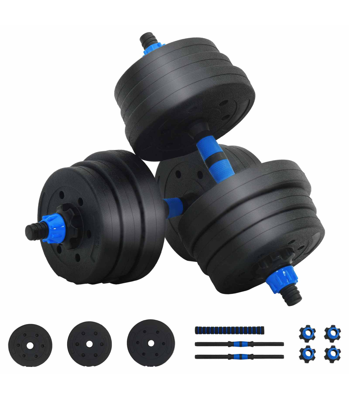 vidaXL 2-in-1 Dumbbell Set Black and Blue 121 x 19.5 x 19.5 cm