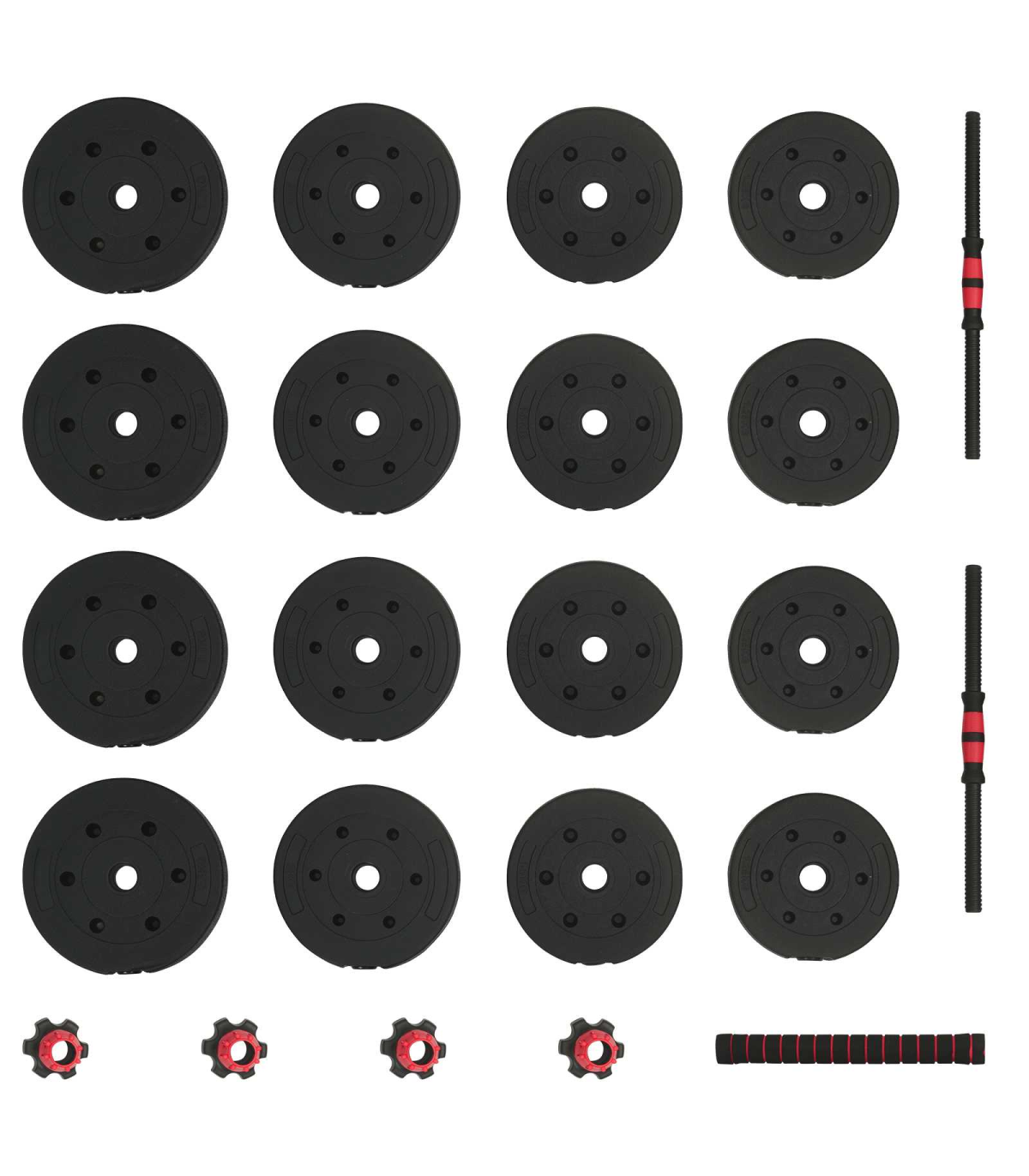 vidaXL 2-in-1 Dumbbell Set Black and Red 121 x 19.5 x 19.5 cm