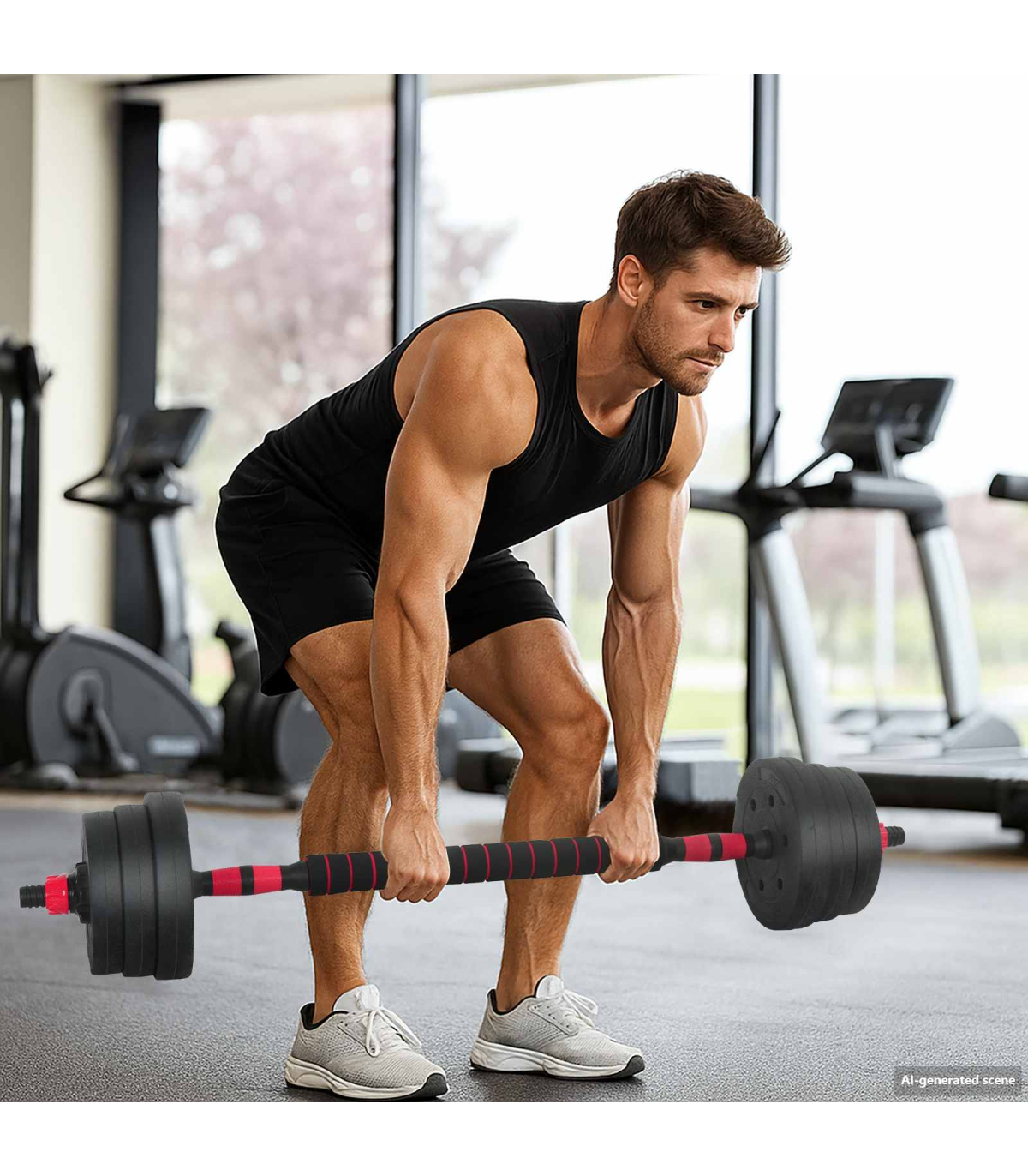 This Adjustable Dumbbell Set offers a versatile fitness solution for those seeking to enhance their workout routine. It features a modern design characterized by its simplicity and functionality, making it a perfect addition to any home gym. With its sleek black finish, this set integrates seamlessly into any indoors fitness space, providing users with a flexible equipment option for building strength and muscle tone. Durable Materials: Combining PVC and iron sand, this dumbbell set is crafted for durability and long-lasting use. The abrasion-resistant properties ensure a reliable workout, session after session, without worrying about wear and tear. Designed to withstand high impact sports, it meets the demands of serious fitness enthusiasts. Detachable Design: Its detachable design allows users to customize their weights, offering flexibility in resistance levels. This feature makes it ideal for both beginners and experienced users, providing an adaptable workout that grows with your fitness journey. Secure Locking Mechanism: Featuring a double-locking system, these dumbbells ensure safety during use. The non-slip handle adds an extra layer of security, minimizing risks of accidents while maintaining focus on your workout. Recommended Usage: Suitable for indoor use only, the set provides a convenient solution for home gym setups. It fits seamlessly into workout routines, aiding in muscle development, strength training, and overall fitness enhancement. Assembly Required: Assembly requires two people and a screwdriver, ensuring a sturdy and dependable finished product that enhances safety during your workouts. Calibrate before use for optimal performance in any high-impact athletic activity.