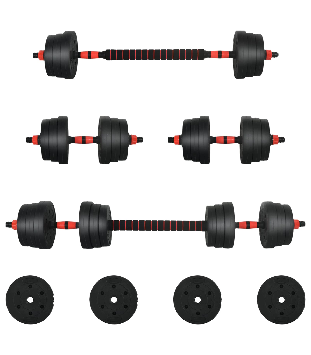 vidaXL 2-in-1 Dumbbell Set Black and Red 121 x 19.5 x 19.5 cm