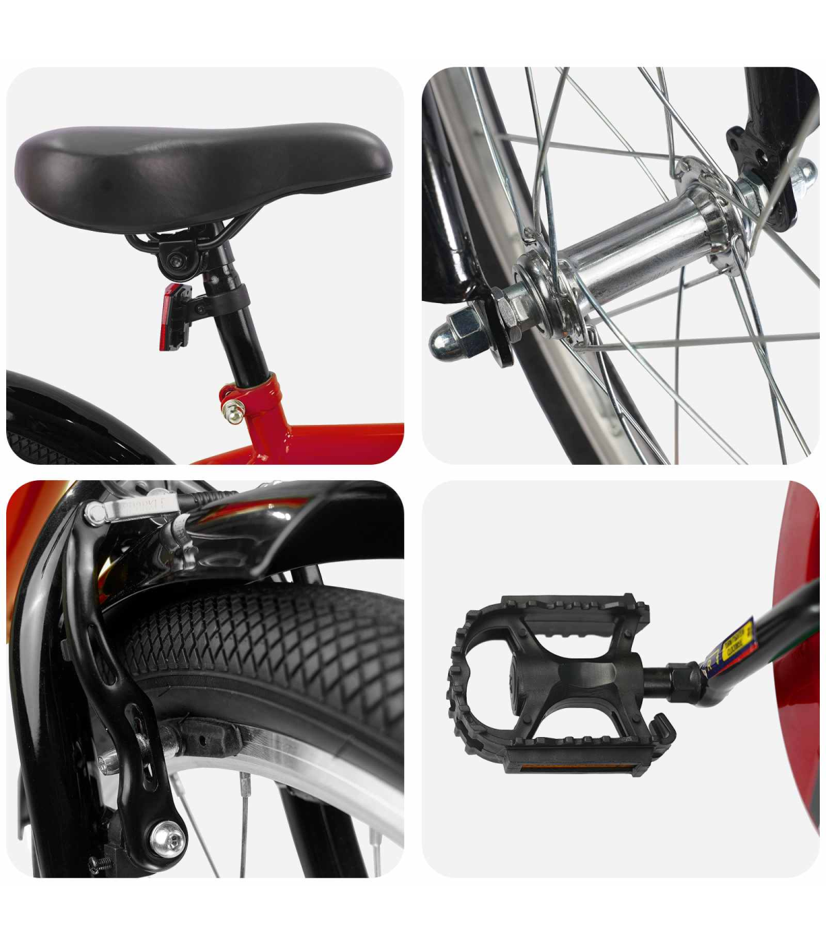 The Modern Kids Bike combines durability and style, making it an ideal choice for young riders exploring the outdoors. Its classic design blends traditional elegance with functional elements, ensuring a reliable and visually appealing ride for kids. Whether zooming through playground paths or cruising the neighborhood, this bike serves up a delightful experience with its sleek looks and robust build that's suited for children eager to ride. Durable Steel Frame: Built with a robust steel frame, this bike provides the foundational strength needed for reliable cycling. The steel material offers outstanding resilience against wear, making it perfect for youthful adventures and outdoor play. Its sturdy build ensures it withstands the demands of active use, promising longevity and consistent performance, so kids stay safe and secure. Adjustable Components: Featuring adjustable handlebars and seat, this bike grows with your child, accommodating different heights with ease. Customization helps secure a comfortable and ergonomic ride, reducing strain and maximizing riding enjoyment. From learning to ride to racing friends, adjustability ensures the bike remains a dependable companion. Single Speed Simplicity: The bike is designed with a single chainring, creating a straightforward riding experience for children. This feature minimizes the complexity of gear use, encouraging confidence in younger riders and simplifying maintenance. It's perfect for leisurely rides around the yard or park without gear distractions. Safety First Design: Equipped with a classic brake lever system, this bike offers effective stopping power crucial for safety. The intuitive design ensures kids can brake confidently, empowering them with control during their rides. Coupled with steel rims, it maintains reliable traction during sudden stops or wet conditions. Easy Maintenance and Care: Caring for this bike is simplified by its thoughtful design and resilient components. Store in a cool, dry location for optimal longevity, and occasionally check key screws and joints to keep it running smoothly. This ensures the bike remains in excellent condition, ready for its next adventure.